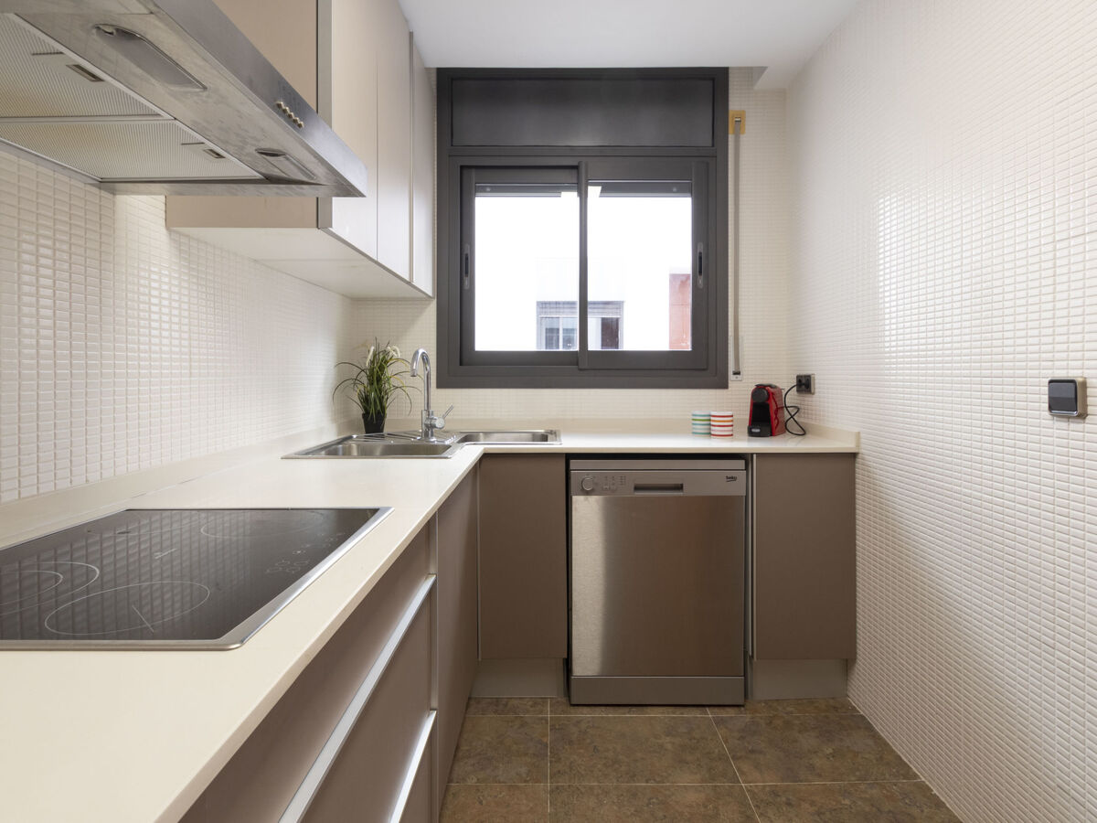 Cuisine (3 plaques de cuisson, four, lave-vaisselle, grille-pain, bouilloire électrique, micro-ondes, cafetière électrique, Capsules pour machine à café (Nespresso)).