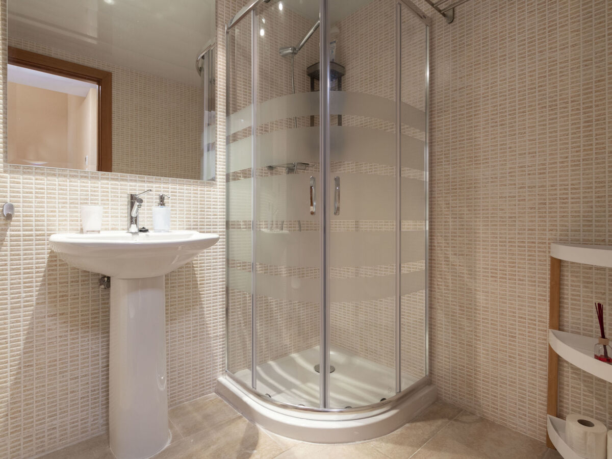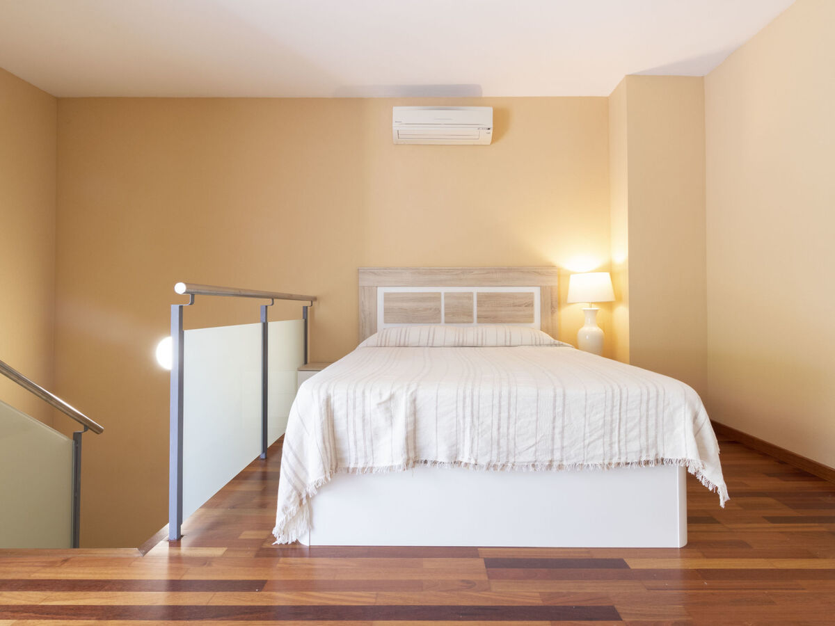 1 chambre avec 1 lit (90 cm) avec douche/WC.