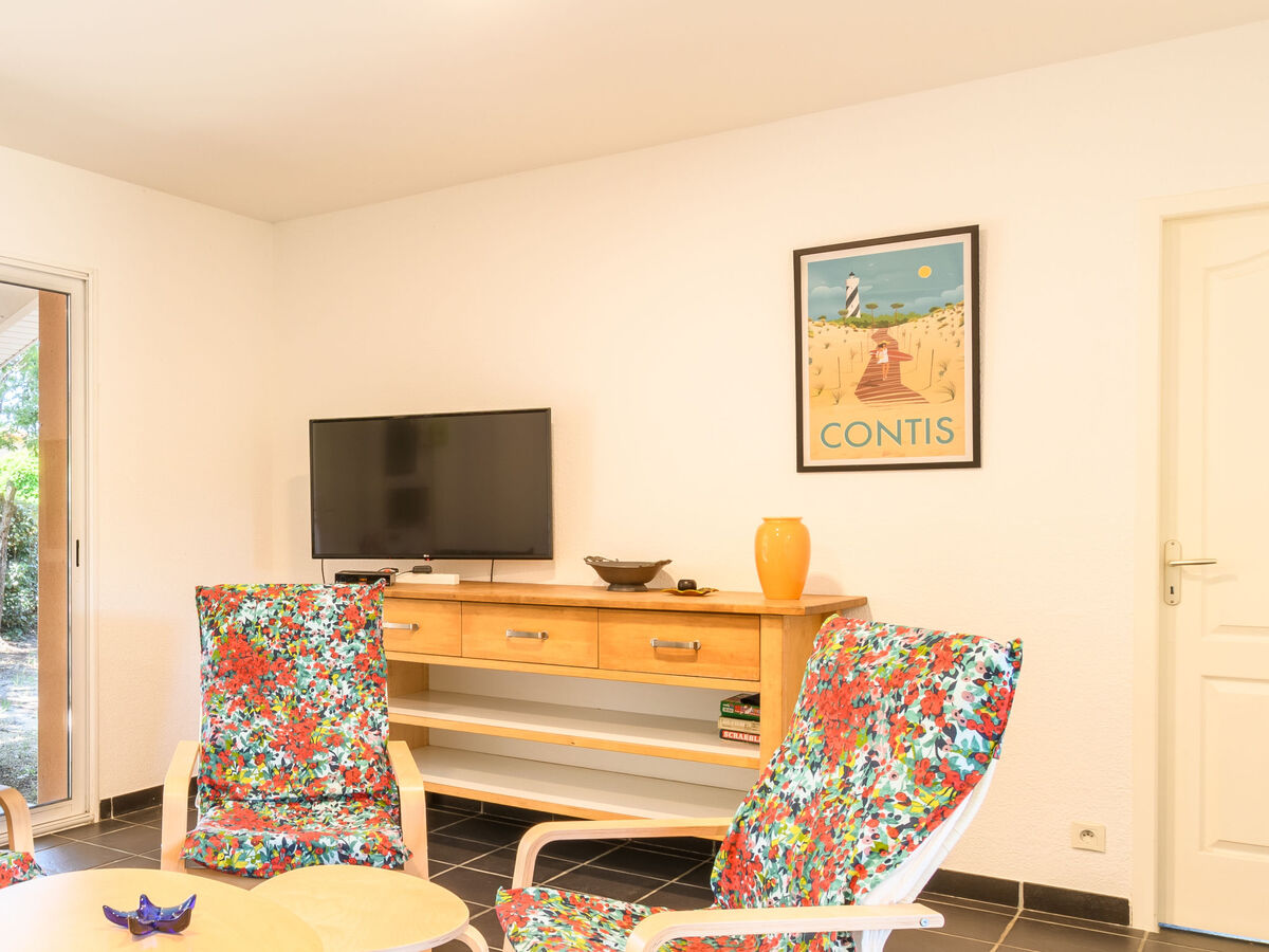 À 5 km du centre de Contis, à 5 km du centre de Saint-Julien-en-Born, à 18 km du centre de Mimizan, dans un quartier résidentiel, à 5.5 km de la mer.