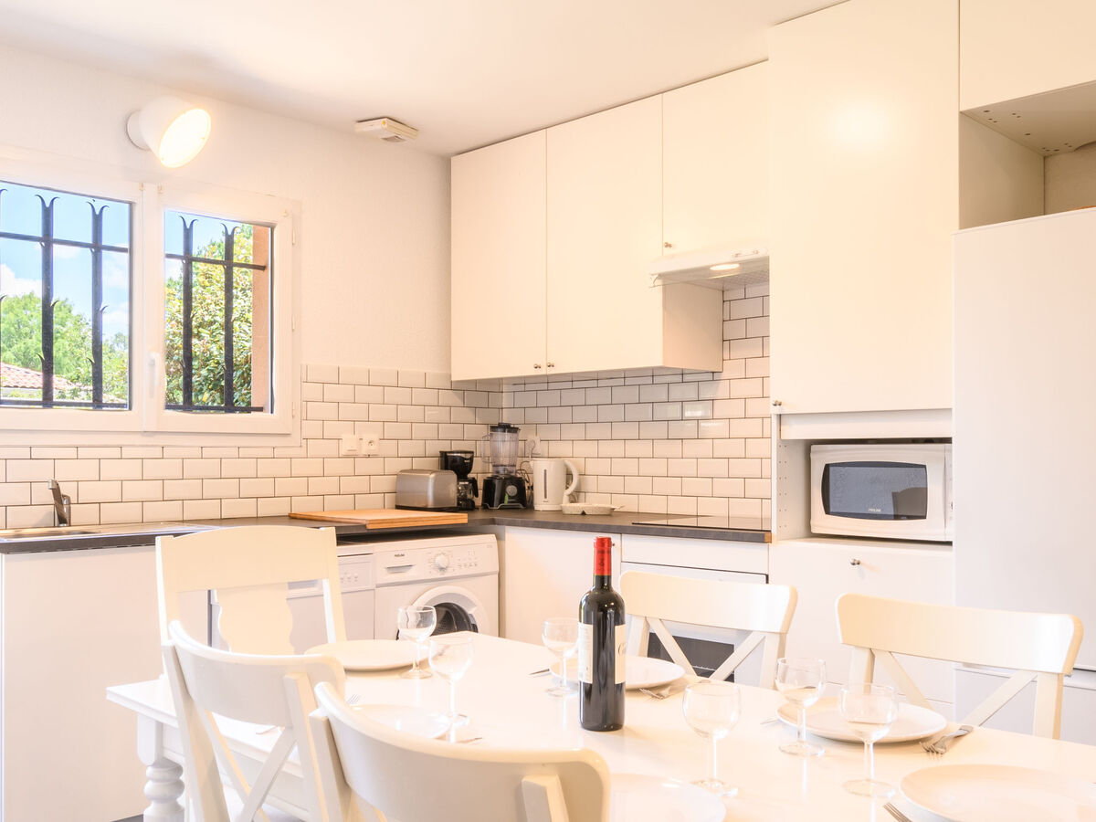 Cuisine ouverte (four, lave-vaisselle, 3 plaques à induction, grille-pain, bouilloire électrique, micro-ondes, congélateur, cafetière électrique).