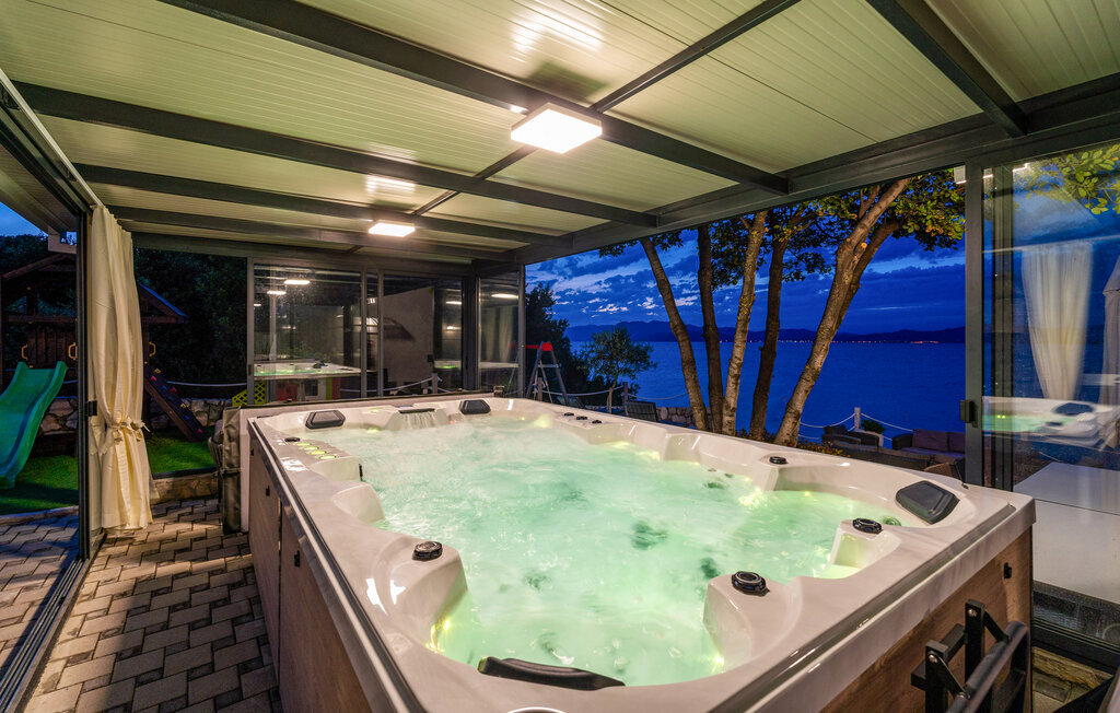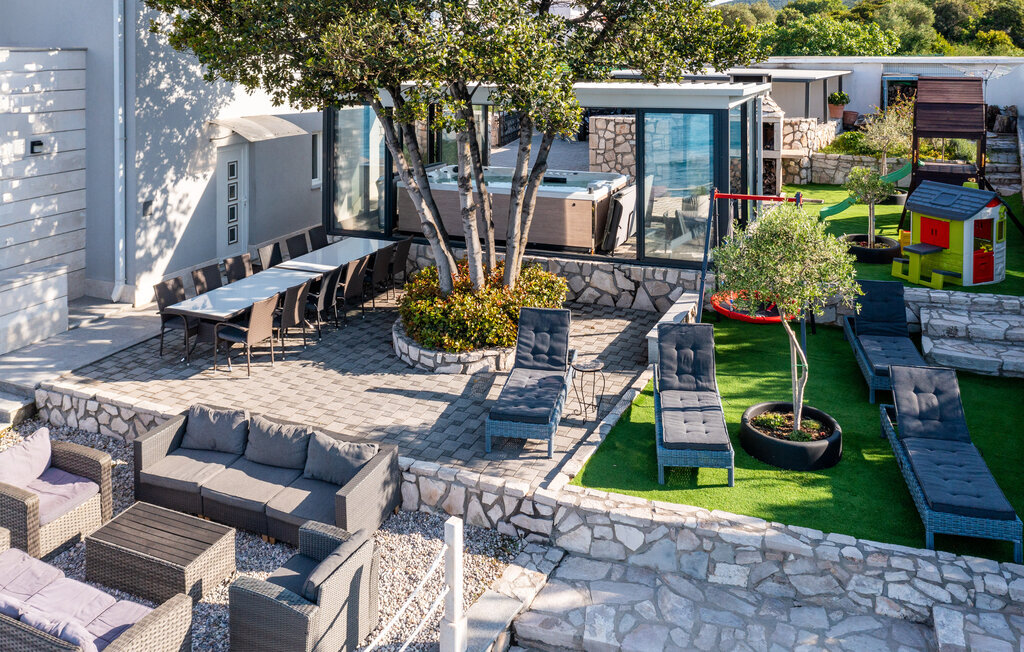 Bien-être à l'extérieur : Location de vacances disposant de chaises-longues et d'un ou plusieurs équipements tels que piscine extérieure, jacuzzi extérieur, lit à baldaquin de jardin etc...