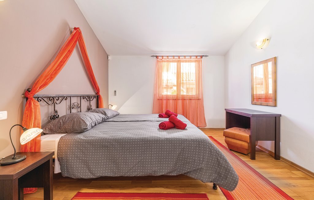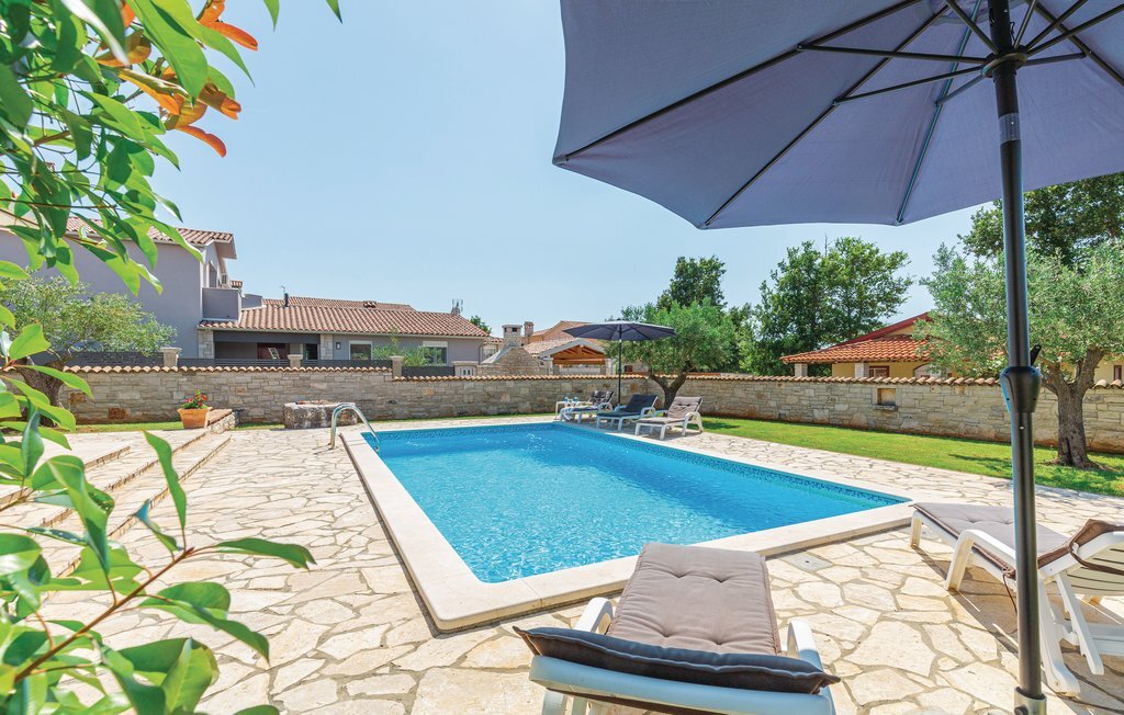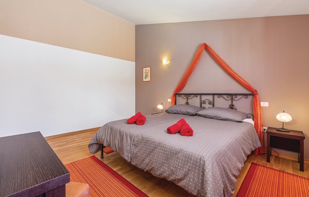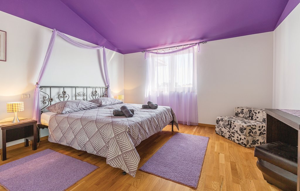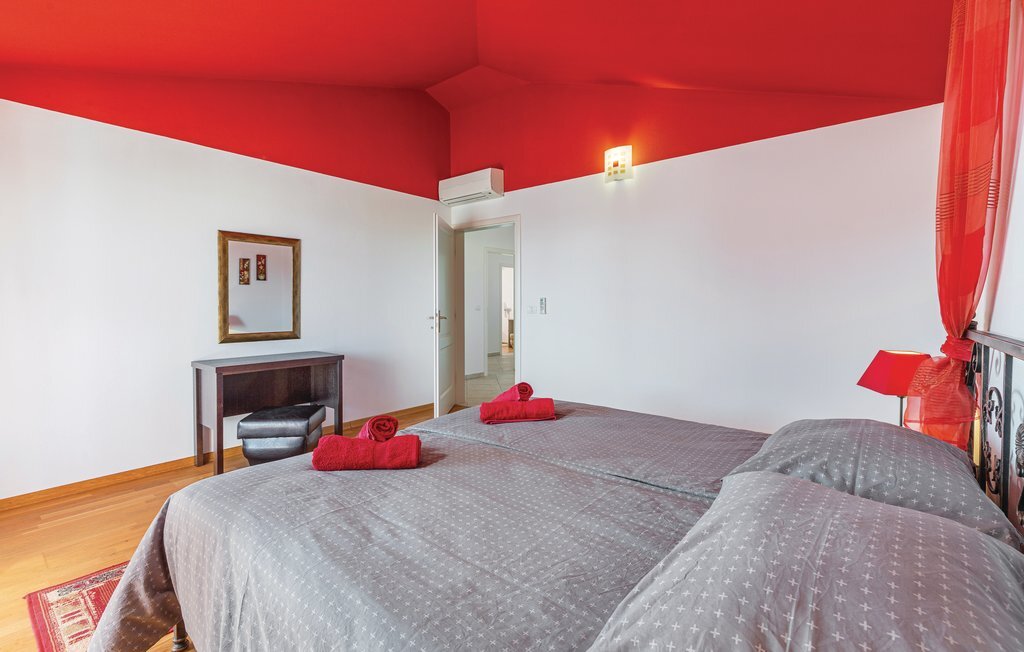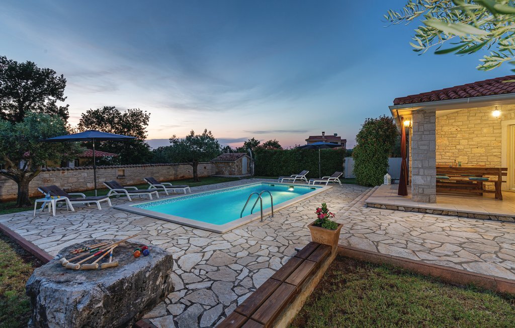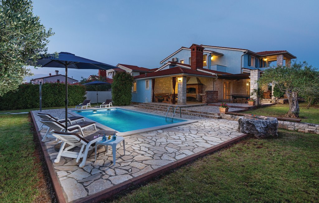 Cette maison est située dans le petit village de Golubovo, à proximité de la petite ville de Fazana et de l'île de Brijuni. Elle est très moderne et luxueusement aménagée et dispose d'un beau jardin privé avec terrasse et piscine. Profitez de belles heures de soleil sur les chaises longues ou feuilletez votre livre préféré à l'ombre du parasol. Au rez-de-chaussée se trouvent la cuisine, le salon, les toilettes et une grande cheminée. Au premier étage se trouvent les chambres à coucher avec salle de bain. Dans la chambre 2, une cheminée vous attend. Les vacanciers actifs peuvent jouer au ping-pong. En voiture, vous pouvez rejoindre le village de Barbariga, où vous pourrez vous baigner et barboter avec vos enfants sur la belle plage de galets. Visitez également le parc national de Brijuni. Vous y trouverez entre autres un parc safari et un terrain de golf. En outre, vous pourrez visiter plusieurs sites archéologiques romains. A seulement 8 km se trouve la ville de Pula, la plus grande ville d'Istrie, qui offre de nombreuses possibilités d'activités, des cafés et restaurants agréables ainsi qu'une vie nocturne variée.