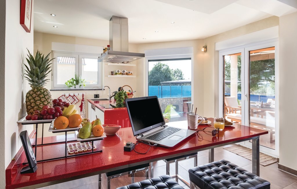 Cette maison de vacances élégamment aménagée se trouve à Peroj, où vous pouvez également visiter un site de fouilles datant de l'époque romaine. Le rez-de-chaussée lumineux donne accès à une terrasse reliée à la piscine. À l'étage supérieur se trouvent deux chambres à coucher, dont l'une donne accès à un balcon où vous pourrez admirer le coucher de soleil et la vue sur les îles Brijuni. Au sous-sol se trouve la taverne pour des réunions conviviales. Quelques minutes à pied seulement vous séparent de la plage la plus proche et de la magnifique promenade qui mène jusqu'à la ville pittoresque de Faana, avec ses nombreux restaurants istriens. De là, des excursions en bateau sont également organisées vers le parc national des îles Brijuni. Depuis Faana, des excursions en bateau sont organisées vers le parc national des îles Brijuni. Visitez également la ville antique de Pula. Une planche de SUP est également à la disposition des hôtes sportifs.