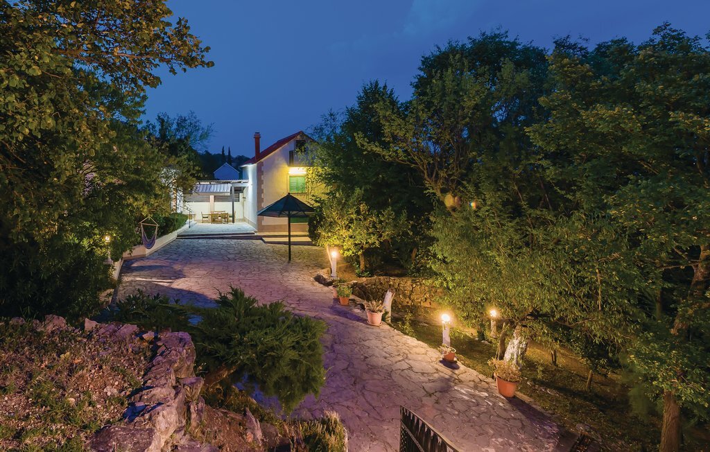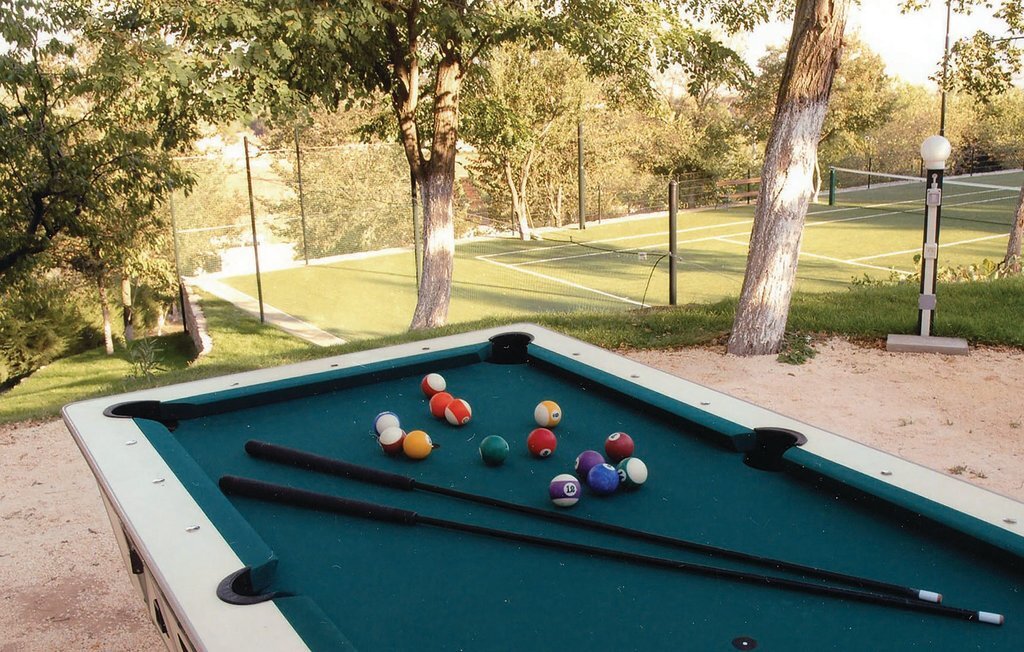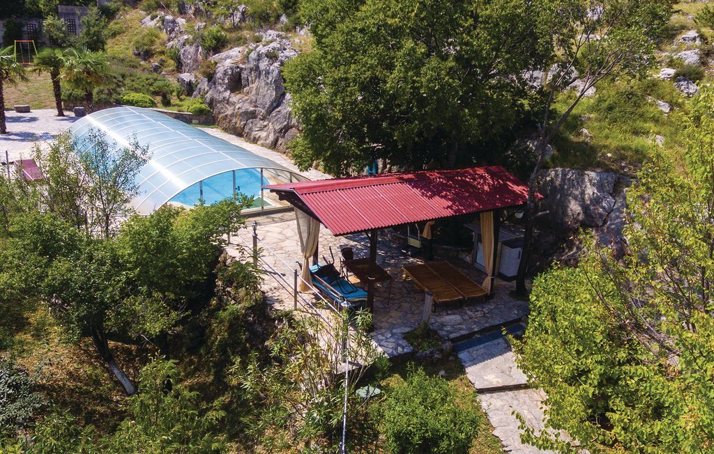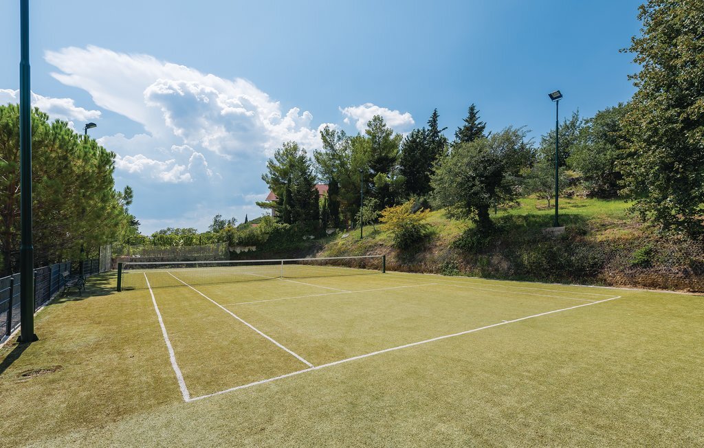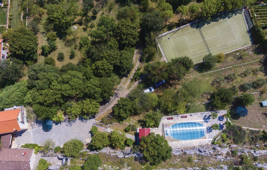 Cette propriété de rêve offre 14.000 m² de nature magnifique, d'idylle villageoise et de confort. Deux maisons de vacances séparées avec une cour commune sont à disposition. L'une des maisons abrite les chambres à coucher, tandis que l'autre accueille les salles de séjour et de détente. Outre la piscine et un court de tennis qui s'intègrent parfaitement dans la nature, la table de billard, les vélos et les jeux de société vous permettront de passer des heures agréables ensemble. La piscine peut être transformée en piscine intérieure à l'aide d'un toit coulissant. Une cheminée extérieure permet de préparer des repas traditionnels et savoureux. Cette propriété située au calme est l'endroit idéal pour se détendre et profiter de l'intimité. Un gardien passe le matin et peut vous aider si vous le souhaitez. Des excursions au lac Peruca, au parc national de Krka ou à la ville de Sibenik sont recommandées.
