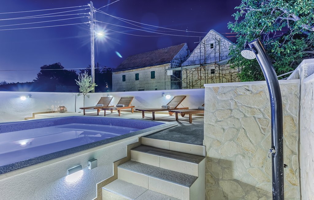 Cette belle maison de vacances est située au cœur de l'arrière-pays karstique, dans le petit village de Vinovo Gornje. Elle est idéale pour tous ceux qui souhaitent se détendre loin du bruit de la ville et des lieux touristiques bondés. Ici, vous pouvez oublier le quotidien et vous faire réveiller à la campagne par le chant des oiseaux. Lors des chaudes journées d'été, la piscine vous invite à vous rafraîchir et la terrasse est l'endroit idéal pour prendre un verre et admirer le coucher du soleil. La maison de vacances se compose de trois étages, accessibles par des escaliers extérieurs. Au premier et au deuxième étage se trouve un appartement bien équipé, tandis qu'au rez-de-chaussée se trouve une salle de réunion, la konoba.