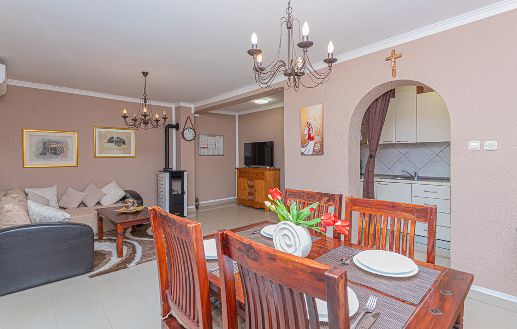 Cette maison de vacances joliment aménagée se trouve à proximité de la ville de Drni, dans le petit village de Kijevo. Sur le terrain se trouve une piscine où vous pourrez vous rafraîchir lors des chaudes journées d'été. Un barbecue pour la préparation de délicieuses grillades est également à votre disposition sur le terrain. Explorez la région de Kiev et profitez des beautés naturelles de l'arrière-pays dalmate. Visitez également la ville de Vrlika, où se trouvent plusieurs attractions : Fort Prozor, les moulins de Lelas, le pont Baecki, la source de l'âme et la source de la rivière Cetina, qui se trouve à Civljane, à quelques kilomètres de la ville de Vrlika.