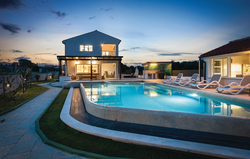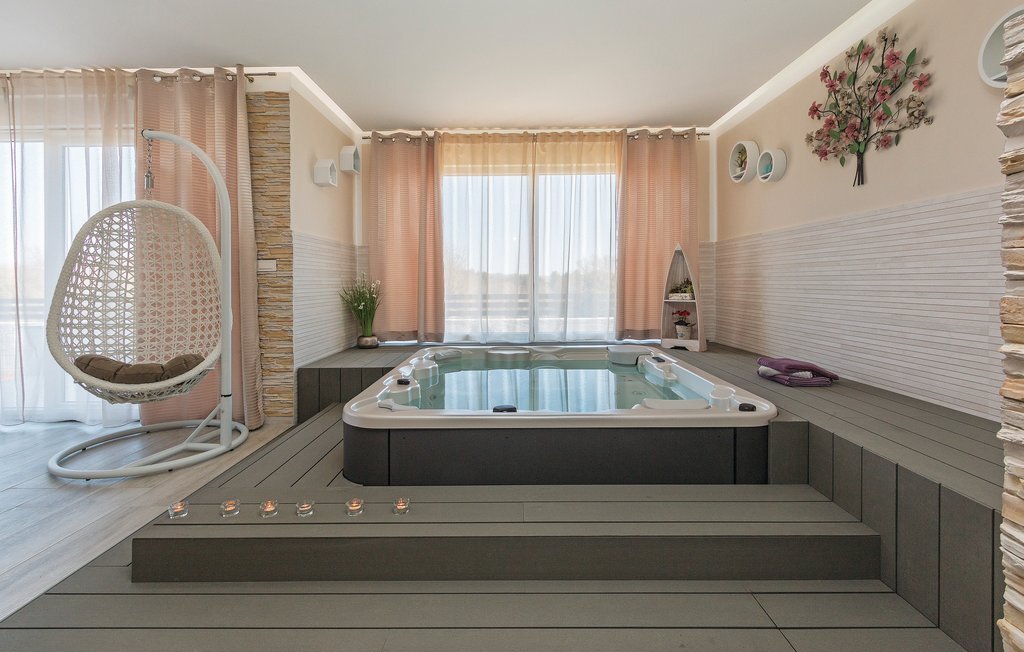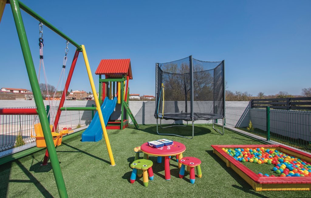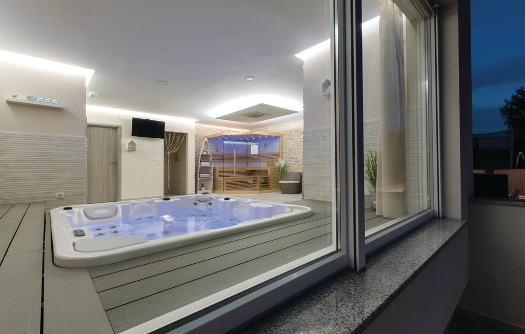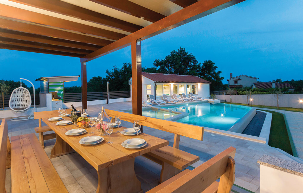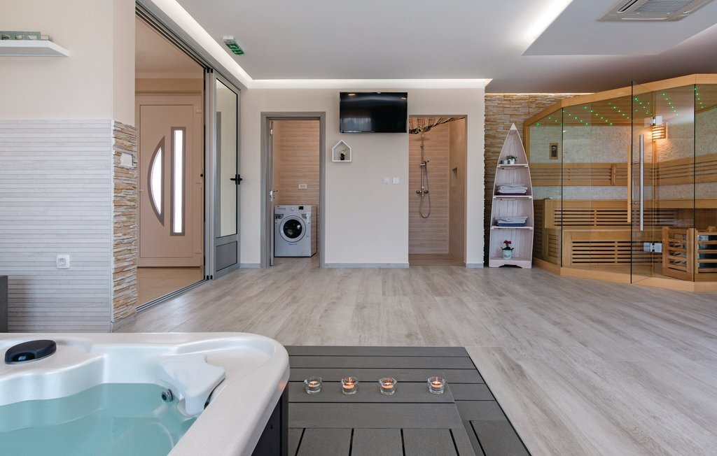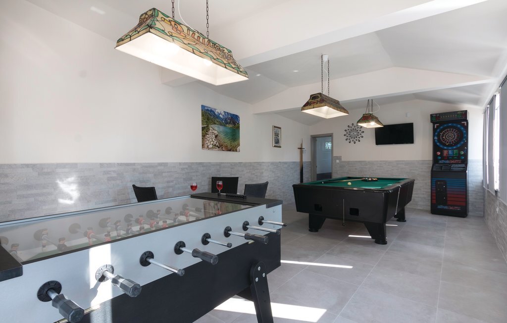 Vous rêvez de vous réveiller dans une maison de vacances exclusive, entourée de nature et d'une ambiance méditerranéenne ? Alors cette maison de première classe est le bon choix pour vous. Cette impressionnante maison de vacances répond à tous les souhaits. Que ce soit la grande piscine à débordement avec bassin séparé pour les enfants, la salle d'activités avec billard, fléchettes et tennis de table ainsi que la salle de bien-être avec jacuzzi pour six personnes et sauna finlandais, tout y est. Les petits hôtes ne s'ennuieront pas non plus dans cette maison de rêve, car trampoline, toboggan, balançoire, PS4 et piscine à boules leur permettront de s'amuser. L'intérieur est entièrement climatisé et l'équipement satisfera même les hôtes les plus exigeants. Les plages les plus proches se trouvent à Duga Uvala et Krnica. Une visite des villes de Pula, Medulin et Pore est également recommandée.