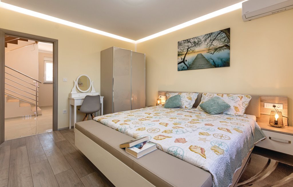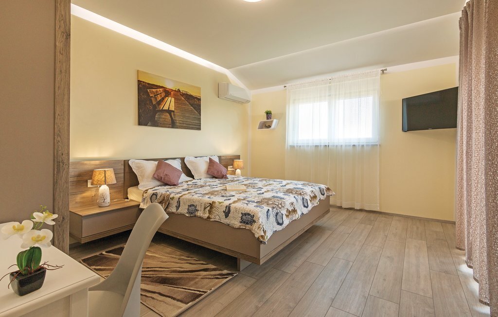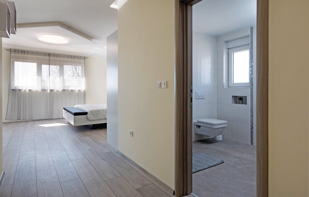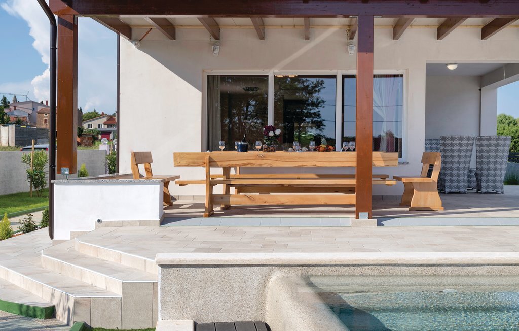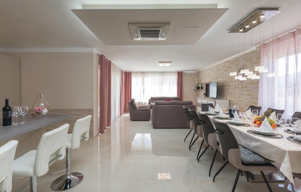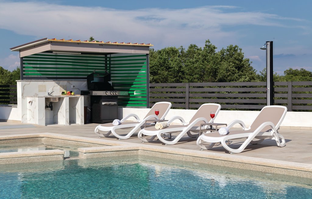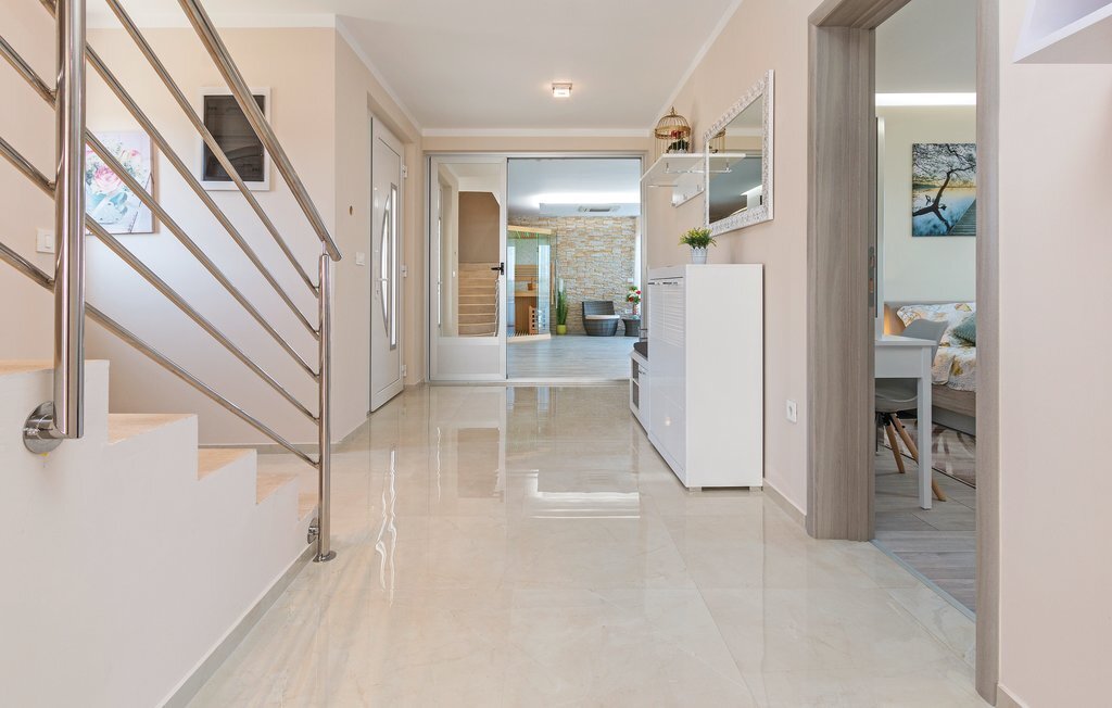 Vous rêvez de vous réveiller dans une maison de vacances exclusive, entourée de nature et d'une ambiance méditerranéenne ? Alors cette maison de première classe est le bon choix pour vous. Cette impressionnante maison de vacances répond à tous les souhaits. Que ce soit la grande piscine à débordement avec bassin séparé pour les enfants, la salle d'activités avec billard, fléchettes et tennis de table ainsi que la salle de bien-être avec jacuzzi pour six personnes et sauna finlandais, tout y est. Les petits hôtes ne s'ennuieront pas non plus dans cette maison de rêve, car trampoline, toboggan, balançoire, PS4 et piscine à boules leur permettront de s'amuser. L'intérieur est entièrement climatisé et l'équipement satisfera même les hôtes les plus exigeants. Les plages les plus proches se trouvent à Duga Uvala et Krnica. Une visite des villes de Pula, Medulin et Pore est également recommandée.