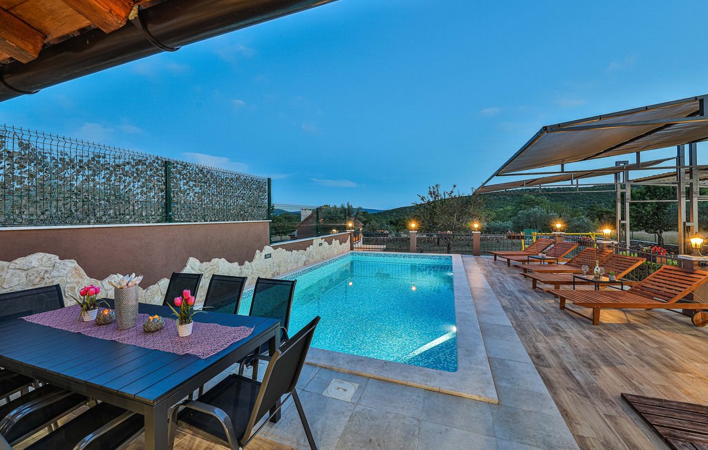 Bien-être à l'extérieur : Location de vacances disposant de chaises-longues et d'un ou plusieurs équipements tels que piscine extérieure, jacuzzi extérieur, lit à baldaquin de jardin etc...
