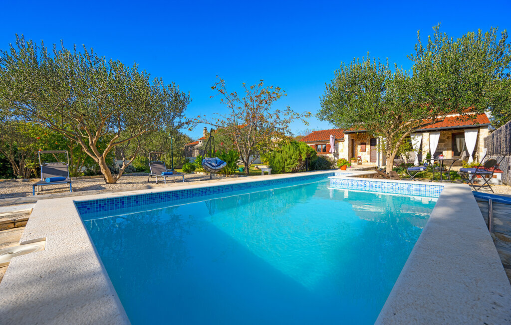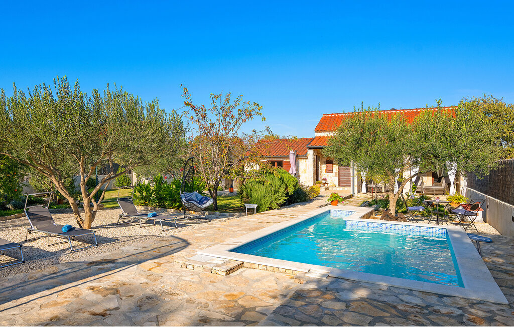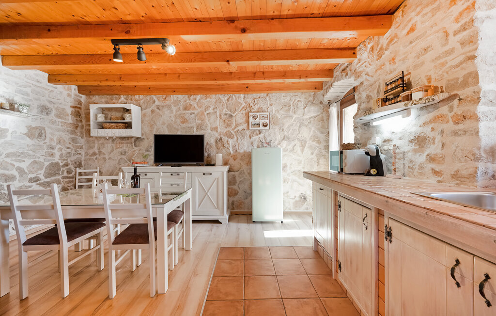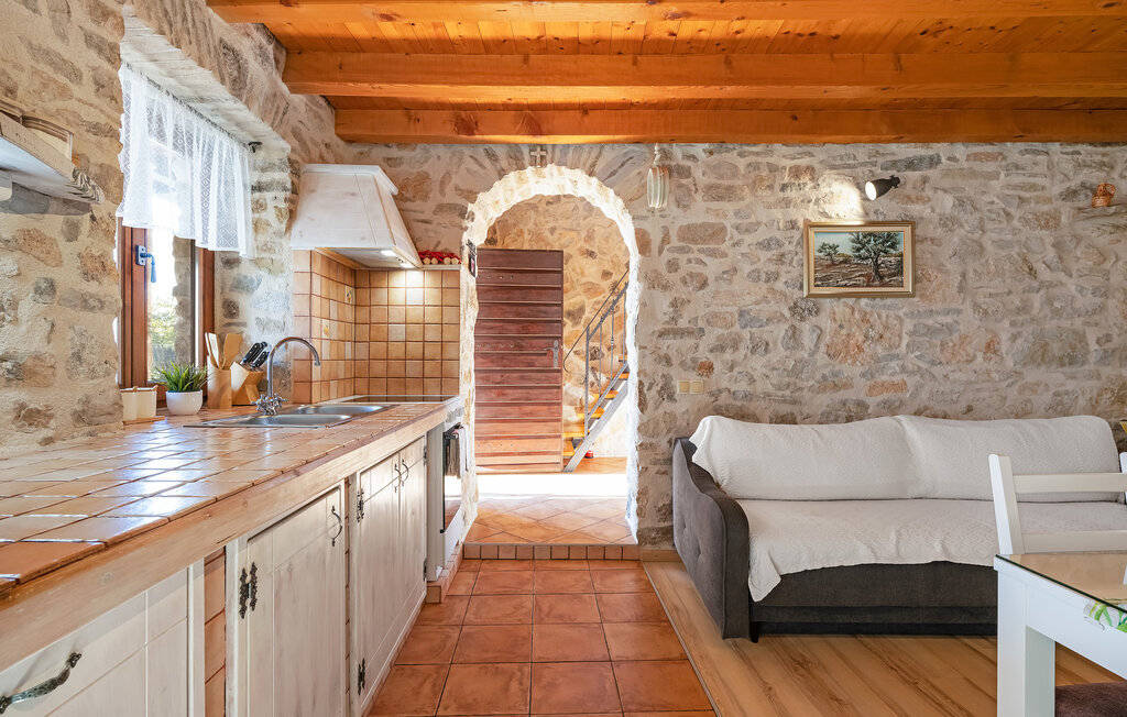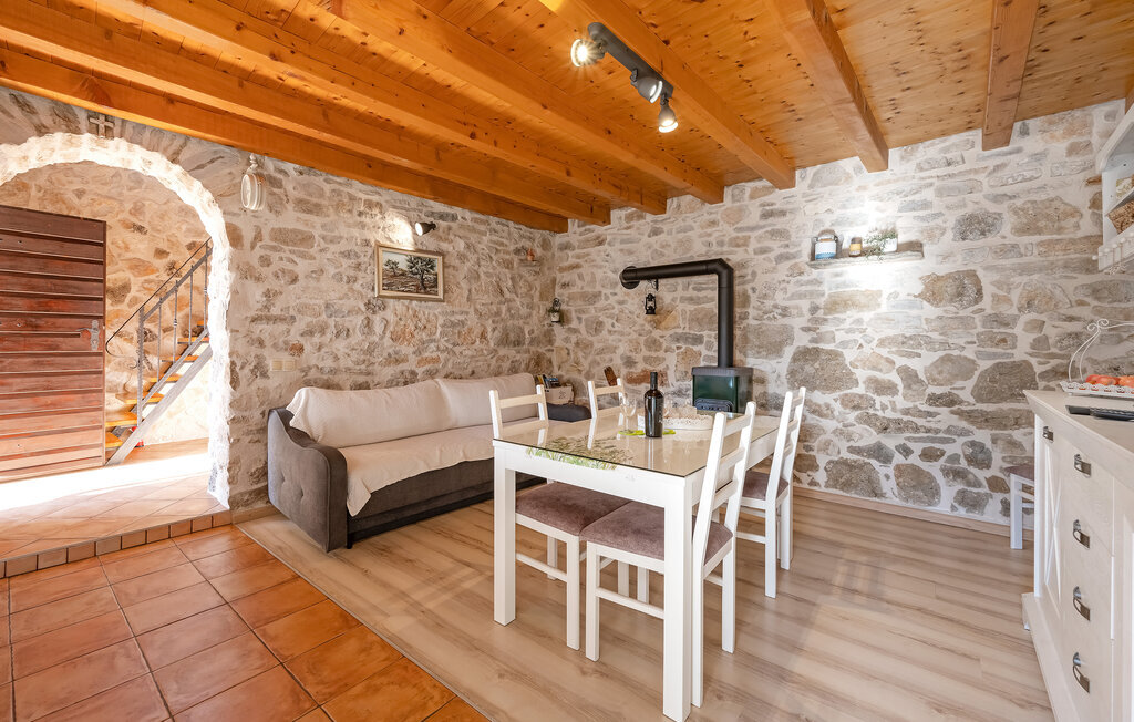 Cette charmante maison de vacances en pierre se trouve dans un petit village tranquille près d'ibenik, dans le parc national de Krka.La galerie est accessible par un escalier raide et la chambre à coucher avec salle de bain a une entrée séparée sur la terrasse couverte. Vous pouvez passer d'agréables moments d'été au bord de la piscine ou vous amuser avec les commodités pour les enfants. Faites une agréable promenade jusqu'aux magnifiques chutes d'eau de Krka, qui ne sont pas loin de la maison de vacances. Il y a aussi la ville historique de Skradin et l'ancienne Scardona, un joli village avec une offre gastronomique riche. La première plage et la mer sont à environ 10 km.