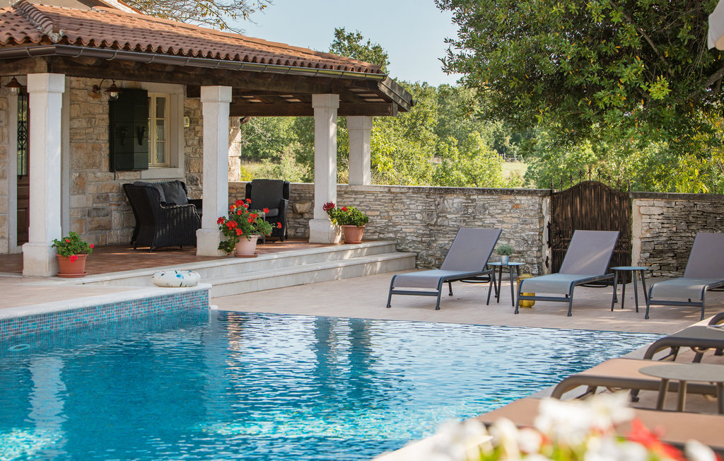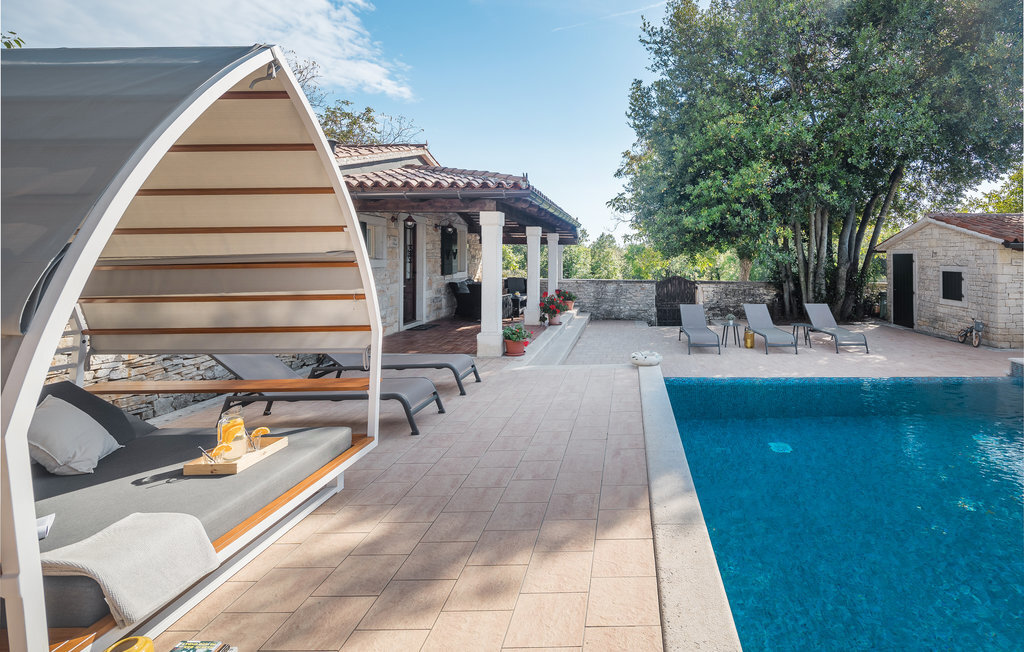 Bien-être à l'extérieur : Location de vacances disposant de chaises-longues et d'un ou plusieurs équipements tels que piscine extérieure, jacuzzi extérieur, lit à baldaquin de jardin etc...