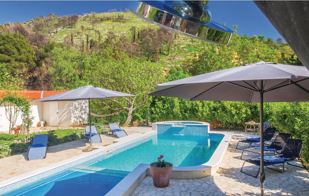 Bien-être à l'extérieur : Location de vacances disposant de chaises-longues et d'un ou plusieurs équipements tels que piscine extérieure, jacuzzi extérieur, lit à baldaquin de jardin etc...