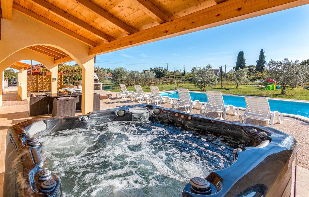 Bien-être à l'extérieur : Location de vacances disposant de chaises-longues et d'un ou plusieurs équipements tels que piscine extérieure, jacuzzi extérieur, lit à baldaquin de jardin etc...