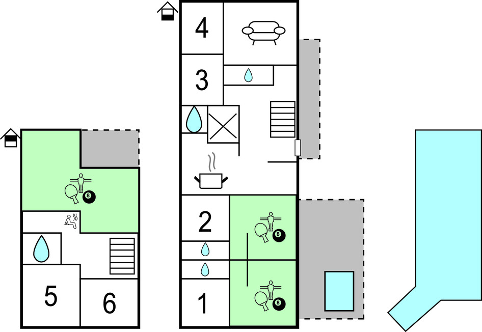 Location de vacances avec activités : Cette location de vacances comprend un ou plusieurs équipements de loisir (ping-pong, billard, baby-foot...)