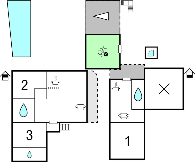 Location de vacances avec activités : Cette location de vacances comprend un ou plusieurs équipements de loisir (ping-pong, billard, baby-foot...)