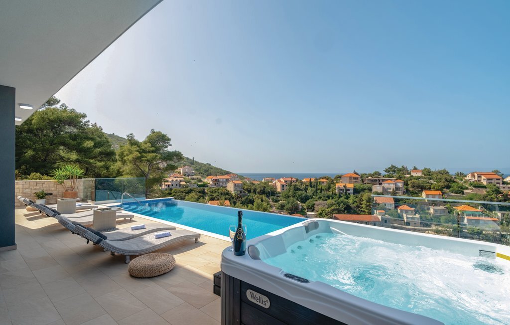 Bien-être à l'extérieur : Location de vacances disposant de chaises-longues et d'un ou plusieurs équipements tels que piscine extérieure, jacuzzi extérieur, lit à baldaquin de jardin etc...
