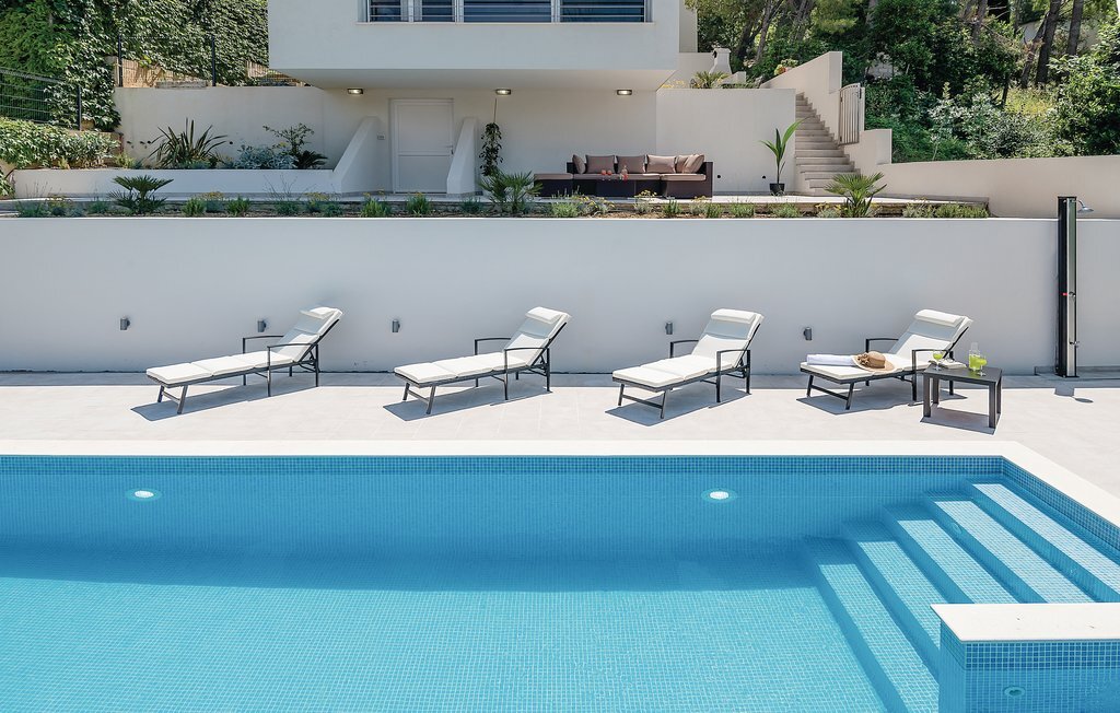 Bien-être à l'extérieur : Location de vacances disposant de chaises-longues et d'un ou plusieurs équipements tels que piscine extérieure, jacuzzi extérieur, lit à baldaquin de jardin etc...