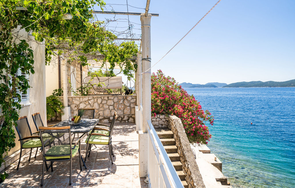 La maison de vacances se trouve dans le village de Ratac près de Slano et est idéale pour des vacances en famille. Elle se compose de deux unités d'habitation avec accès de l'extérieur et se trouve en première ligne de la mer. Il y a trois chambres à coucher, deux salles de bain, une cuisine avec salle à manger et un salon. Depuis le salon, vous accédez à la grande terrasse avec barbecue. Ici, vous profitez également d'une vue magnifique sur la mer. La plage, qui n'est accessible qu'aux hôtes, se trouve juste devant la maison. Dubrovnik n'est qu'à 20 km environ, vous y trouverez de nombreuses possibilités culturelles et d'activités. Le parking se trouve sur le terrain au-dessus de la maison.
