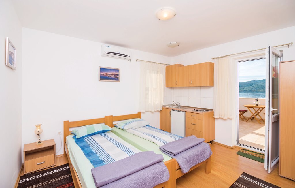 Dans le village de Ratac, près de Slano, se trouve cette maison jumelée simple. Elle se trouve en première ligne de la mer, où il y a un plateau en béton qui n'est accessible qu'aux hôtes. La maison se compose de deux unités d'habitation, l'une à l'étage supérieur et l'autre à l'étage inférieur, avec une entrée extérieure et des escaliers. La terrasse couverte avec vue sur la mer et le barbecue est l'endroit idéal pour se détendre et déguster les plats de la région. La ville de Dubrovnik, riche en culture et en divertissement, est à 20 km. Des places de parking sont disponibles dans la rue au-dessus de la maison. Le propriétaire habite dans l'autre moitié de la maison, dans l'appartement du premier étage.
