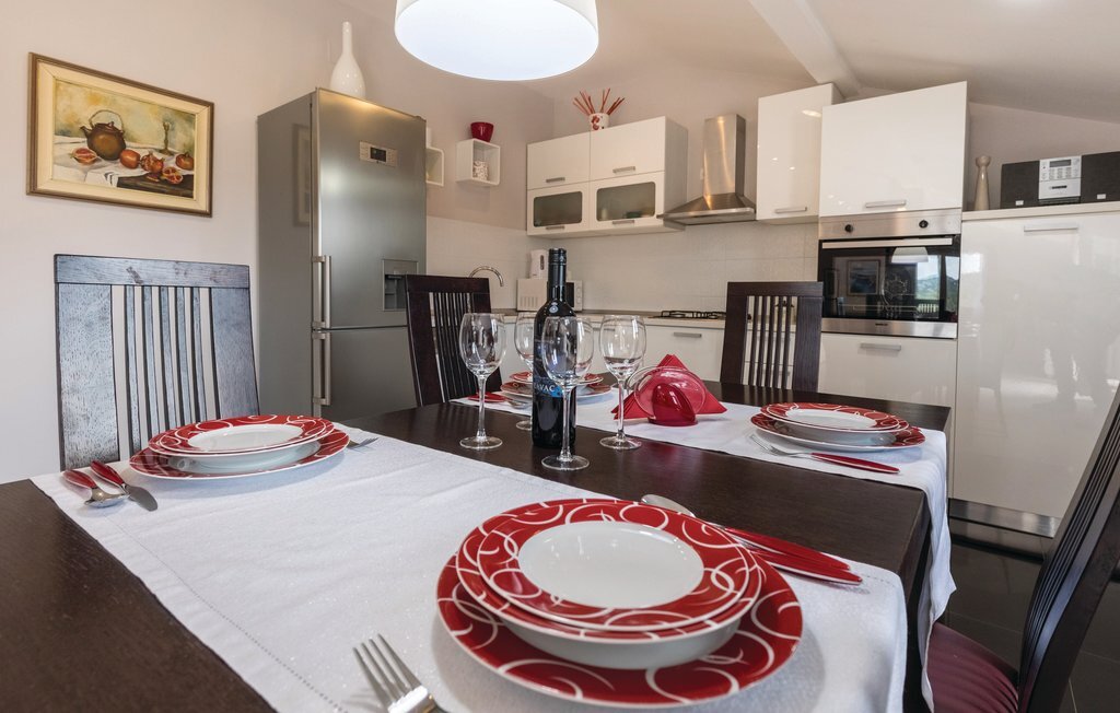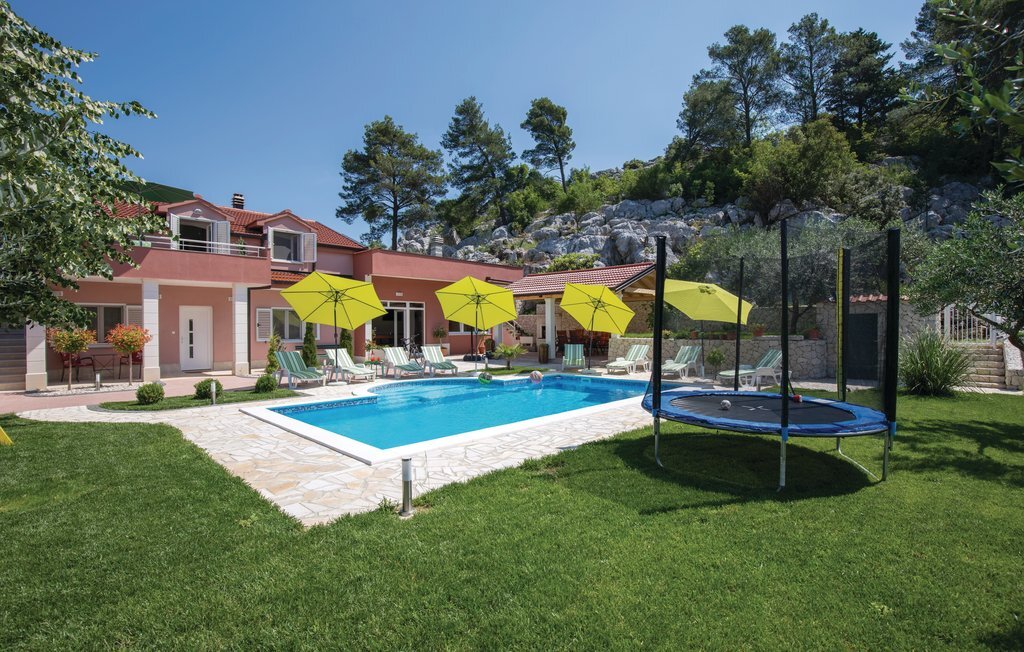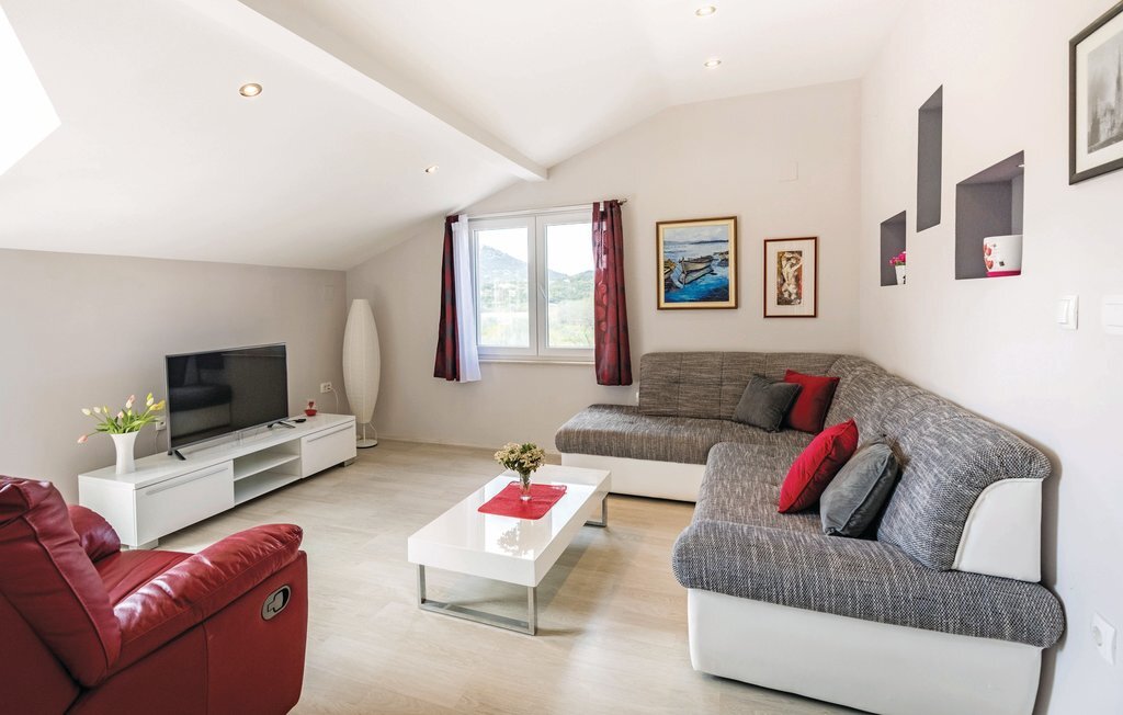 Cette magnifique maison de vacances avec piscine à Baina jouit d'une situation idyllique non loin d'un lac. Un intérieur joliment aménagé assure le confort, comme une agréable ambiance de vie s'étendant sur deux étages avec des escaliers extérieurs. Au rez-de-chaussée se trouvent deux chambres à coucher, une salle de bain ainsi qu'une cuisine séparée avec barbecue et salle de loisirs. Au premier étage, il y a une cuisine-salle à manger, deux chambres à coucher et une salle de bain. À l'extérieur, une belle piscine avec une zone de bronzage ainsi qu'une terrasse couverte vous attendent. Le lac est à environ 300 m et la plage de sable est à environ 15 minutes en voiture. Baina est un village dalmate tranquille avec de bonnes possibilités d'excursions vers Dubrovnik, Korula, Mostar et Medjugorje, donc si vous voulez enrichir vos vacances avec de la culture.