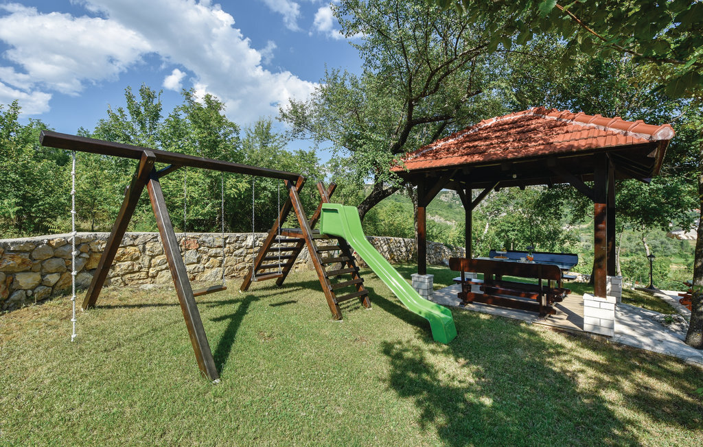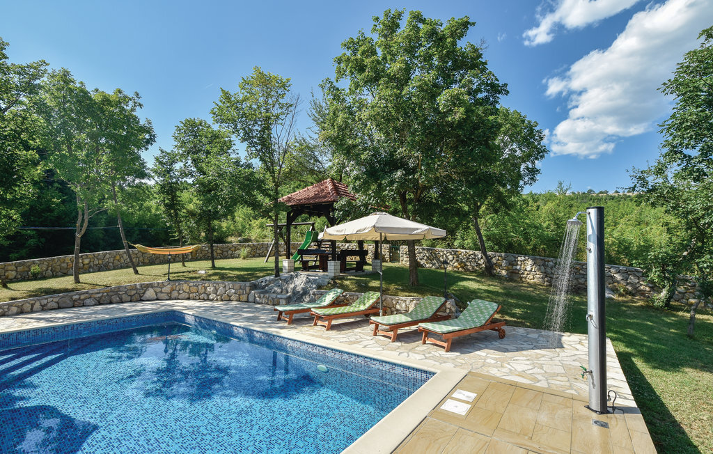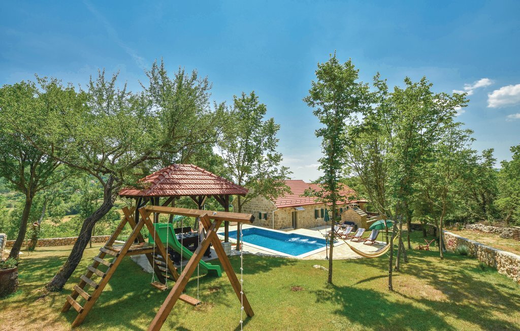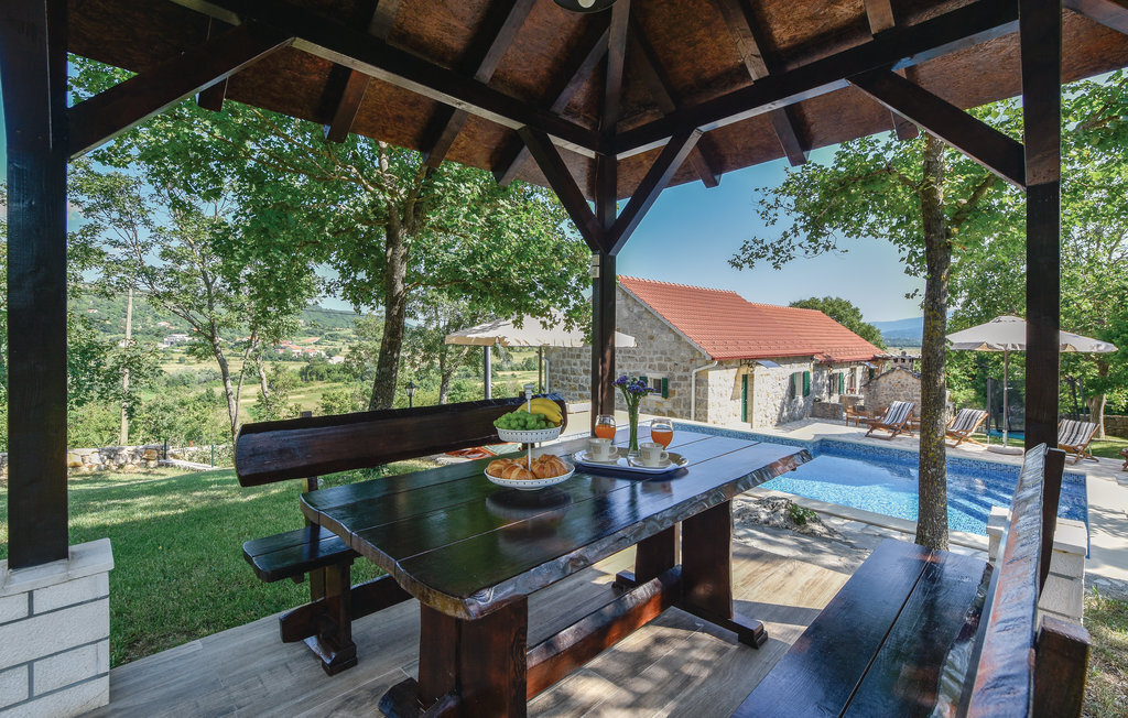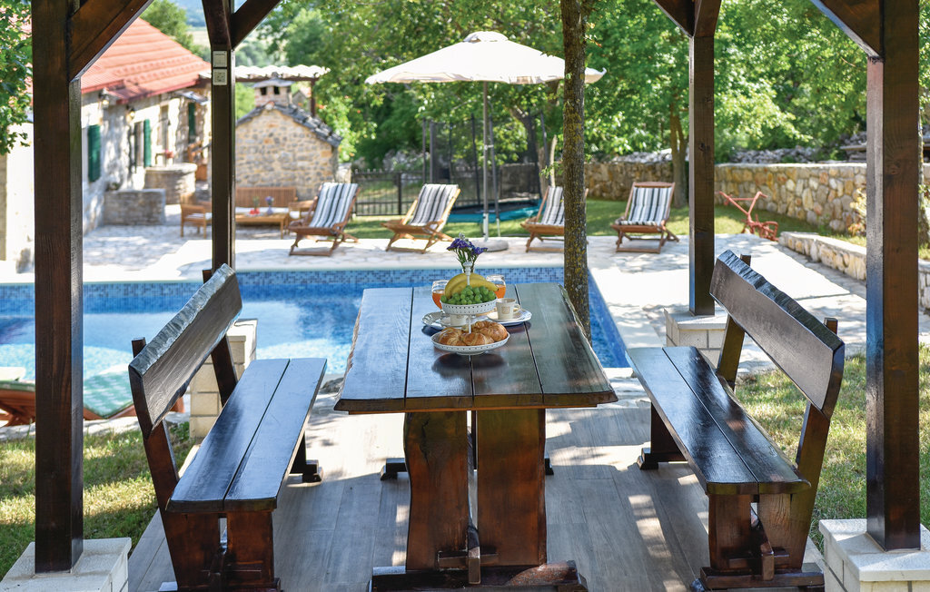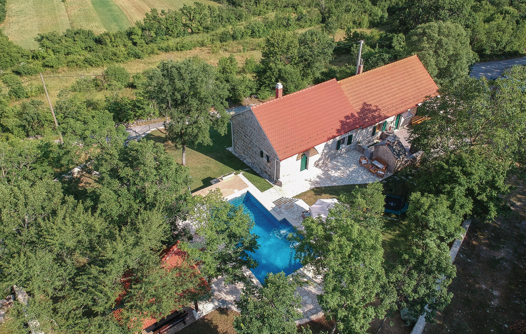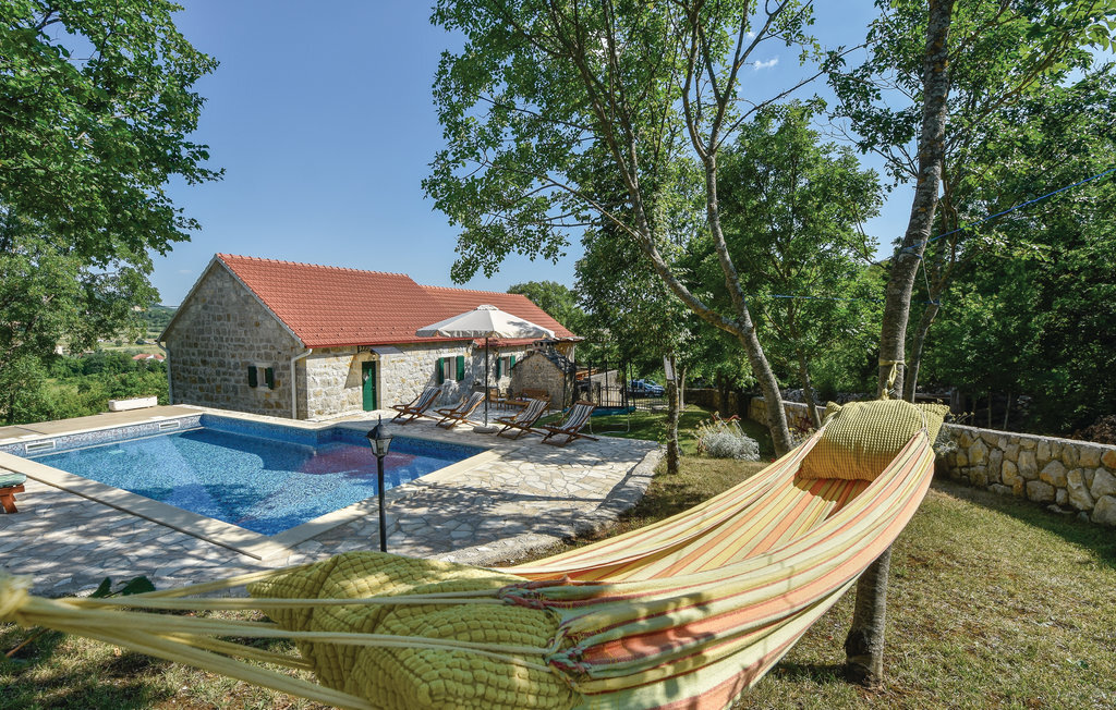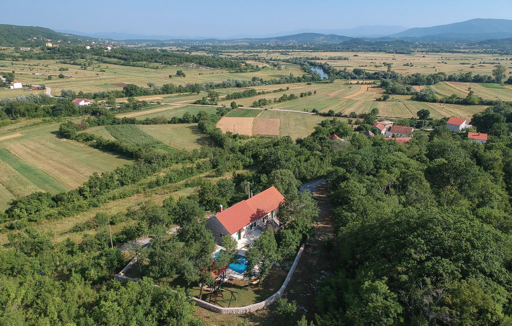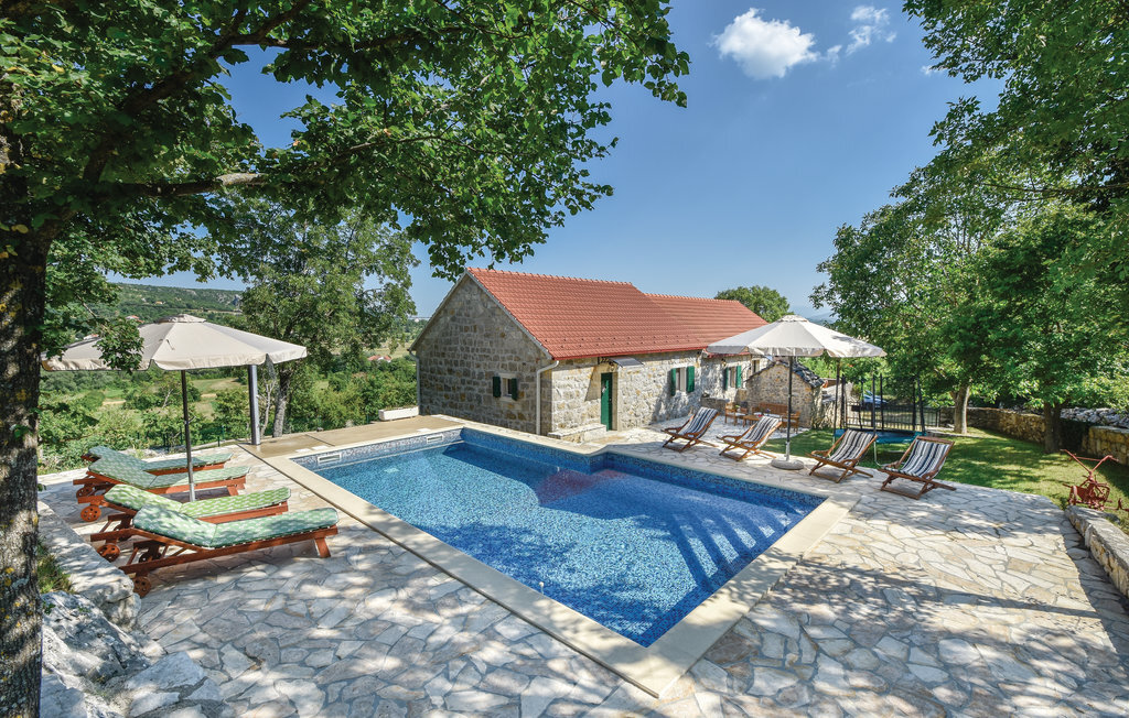 Cette maison traditionnelle en pierre est située sur une petite colline, d'où l'on a une vue fantastique sur la douce campagne. Lors de la rénovation, les éléments d'origine ont été conservés, offrant aux visiteurs une expérience de vie familière. La maison de vacances se compose de deux appartements séparés, reliés par une terrasse, et convient donc pour les vacances de deux familles. Une salle ressemblant à une taverne au rez-de-chaussée ainsi que la piscine extérieure située derrière la maison vous permettront de passer des moments conviviaux pendant votre séjour. Dans les environs, des possibilités variées s'offrent à vous comme le rafting sur la rivière Cetina, la baignade au lac de Péroua avec ses rives de sable, le parapente sur la colline et les cours d'équitation dans le club voisin. La mer est à environ 40 km, tout comme la ville côtière la plus proche, Split, dont les nombreux monuments témoignent de la riche histoire des environs.