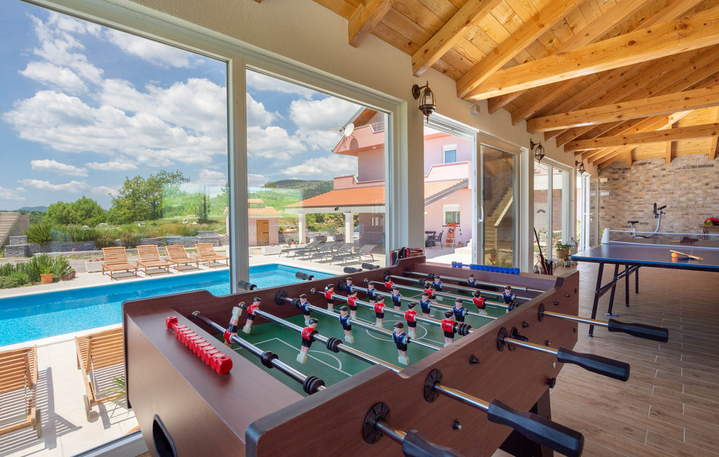 Location de vacances avec activités : Cette location de vacances comprend un ou plusieurs équipements de loisir (ping-pong, billard, baby-foot...)