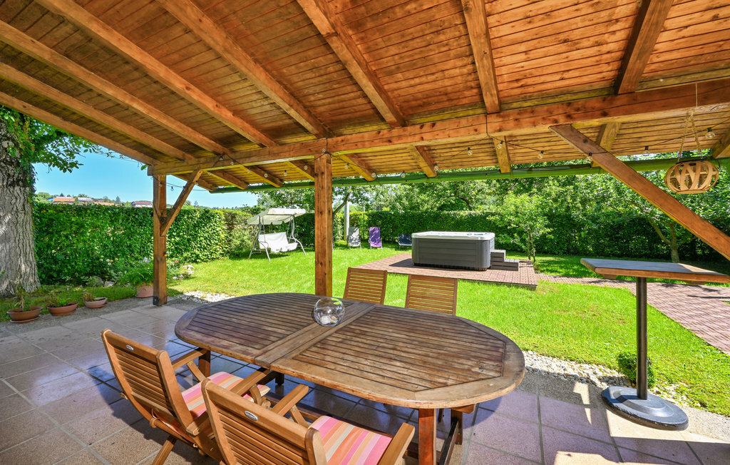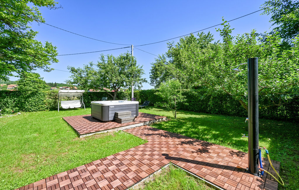 Bien-être à l'extérieur : Location de vacances disposant de chaises-longues et d'un ou plusieurs équipements tels que piscine extérieure, jacuzzi extérieur, lit à baldaquin de jardin etc...