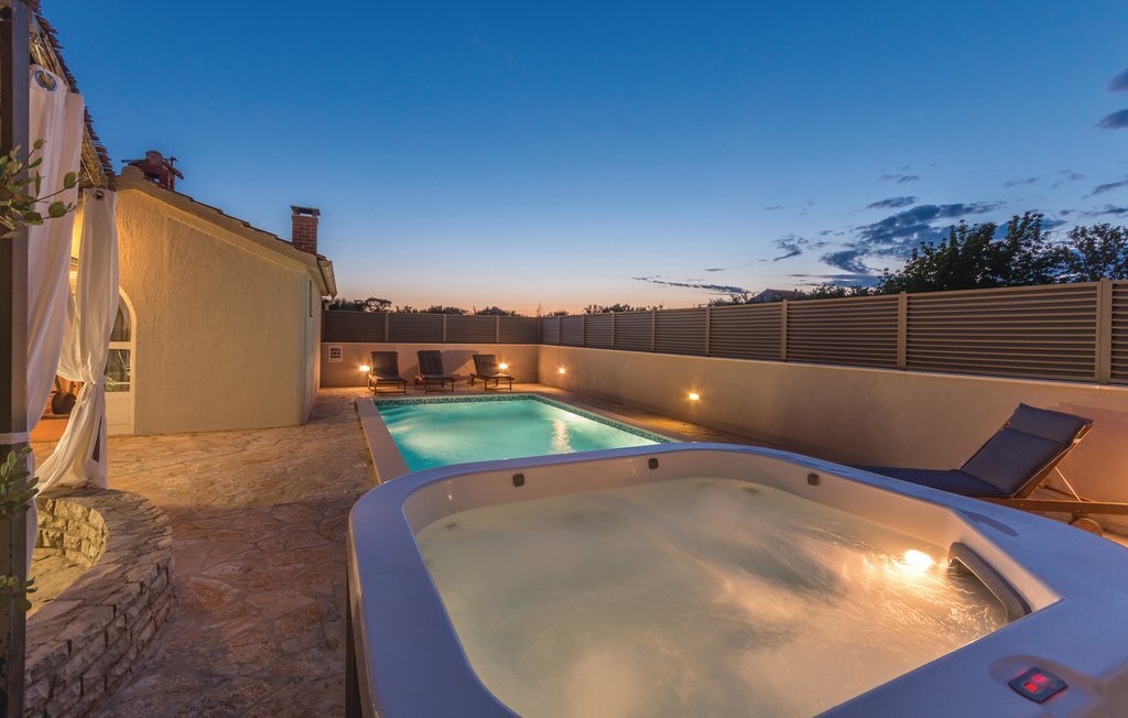 Bien-être à l'extérieur : Location de vacances disposant de chaises-longues et d'un ou plusieurs équipements tels que piscine extérieure, jacuzzi extérieur, lit à baldaquin de jardin etc...