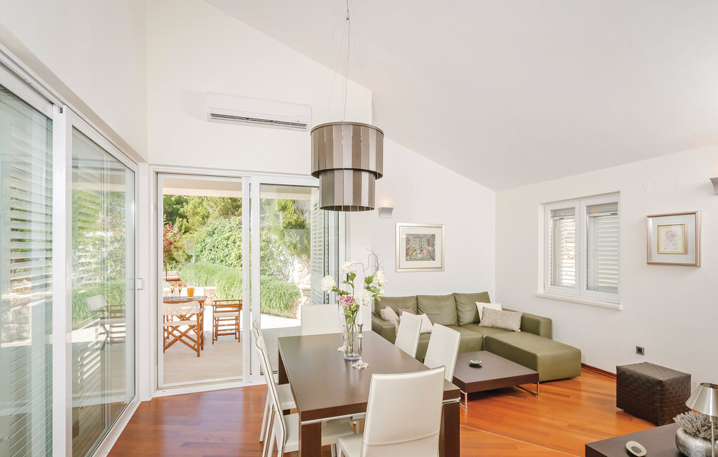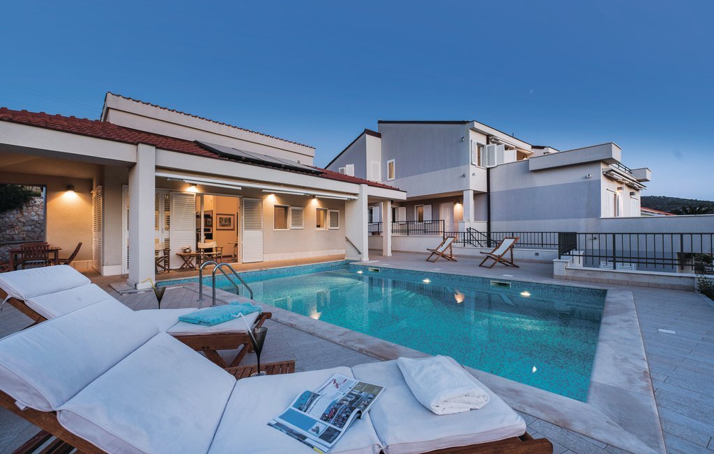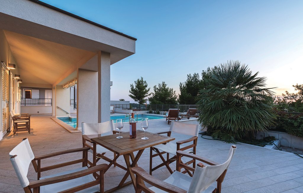 Cette belle maison de vacances confortable se compose de trois appartements entièrement équipés, répartis sur deux étages reliés par un escalier extérieur, ainsi que d'un bâtiment séparé comprenant une cuisine, un salon et une salle de bains avec accès direct à la terrasse avec piscine. Ici, vous pouvez vous détendre avec une vue unique sur la mer et le paysage. La maison est idéale pour des vacances reposantes et luxueuses de plusieurs familles amies. La plage de galets, adaptée aux enfants, est ornée d'une eau cristalline. La ville voisine de Primosten est l'une des plus belles destinations de l'Adriatique. Sur la péninsule pittoresque, vous pourrez trouver d'authentiques tavernes proposant des spécialités locales, découvrir des bars proches de la mer et explorer de charmantes boutiques. Visitez les villes de Sibenik, Trogir et Split ou découvrez la beauté naturelle de cette région qui abrite les deux parcs nationaux, Krka et Kornati.