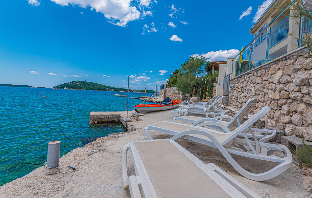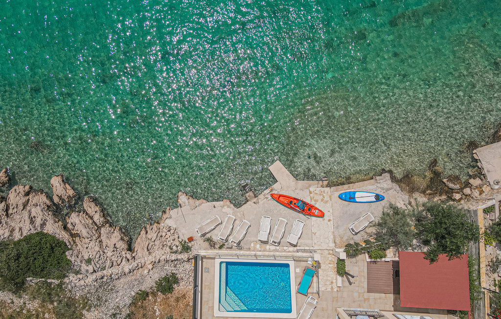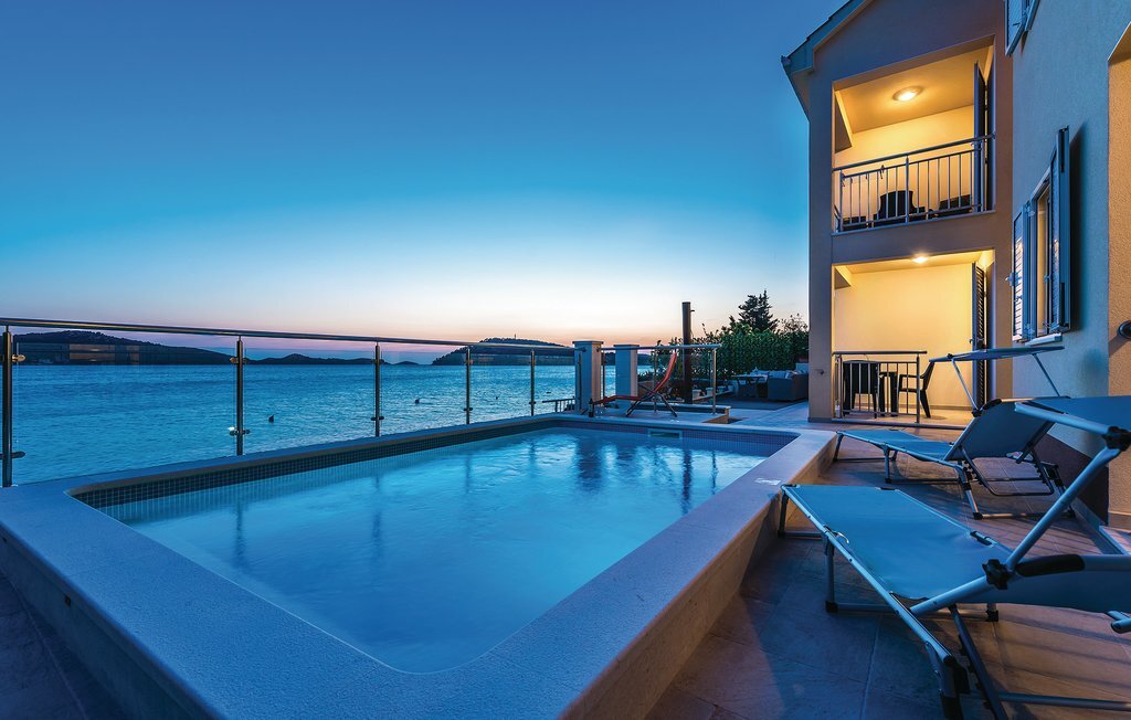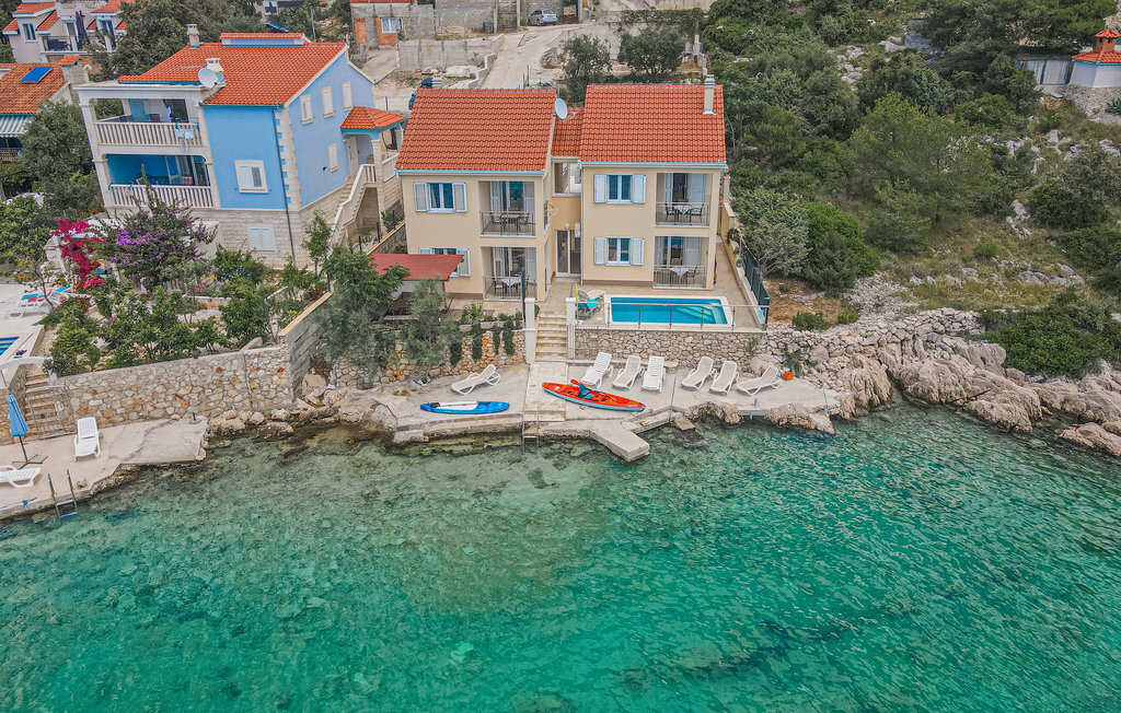 Profitez de la nature croate et de la mer cristalline dans cette élégante maison de vacances avec piscine en bord de mer. Cette baie tranquille près du petit village de Kalebova Luka, près de Rogoznica, est idéale pour des vacances relaxantes et reposantes. La maison est lumineuse et ensoleillée et dispose d'une magnifique vue panoramique sur la mer. Elle se compose de quatre appartements équipés, reliés par des escaliers extérieurs, ainsi que d'une grande terrasse commune avec barbecue. Les magasins, restaurants et cafés les plus proches se trouvent à Raanj. Visitez Rogoznica, connue pour son beau port de plaisance Frapa ainsi que le lac de l'œil du dragon (Zmajevo oko).