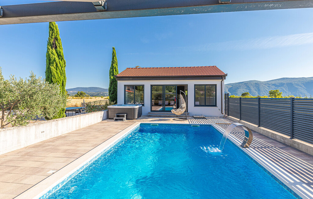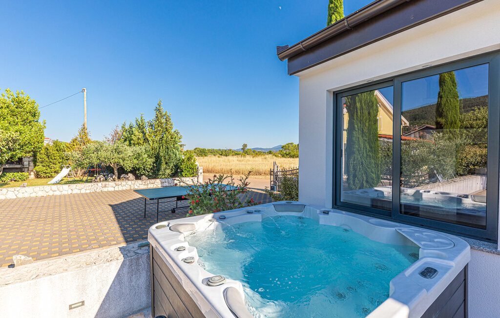 Bien-être à l'extérieur : Location de vacances disposant de chaises-longues et d'un ou plusieurs équipements tels que piscine extérieure, jacuzzi extérieur, lit à baldaquin de jardin etc...