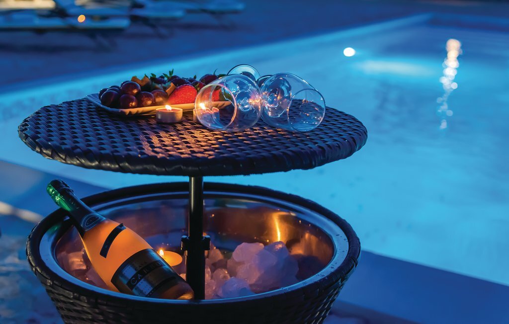 Bien-être à l'extérieur : Location de vacances disposant de chaises-longues et d'un ou plusieurs équipements tels que piscine extérieure, jacuzzi extérieur, lit à baldaquin de jardin etc...
