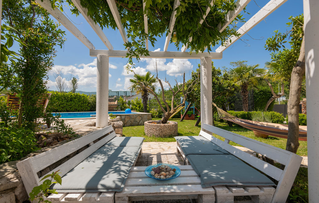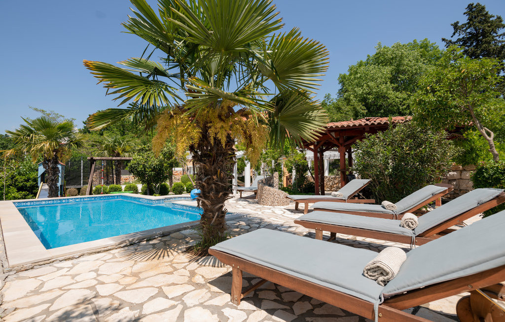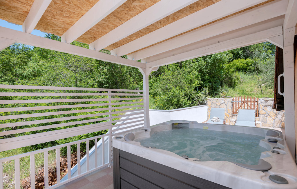 Bien-être à l'extérieur : Location de vacances disposant de chaises-longues et d'un ou plusieurs équipements tels que piscine extérieure, jacuzzi extérieur, lit à baldaquin de jardin etc...