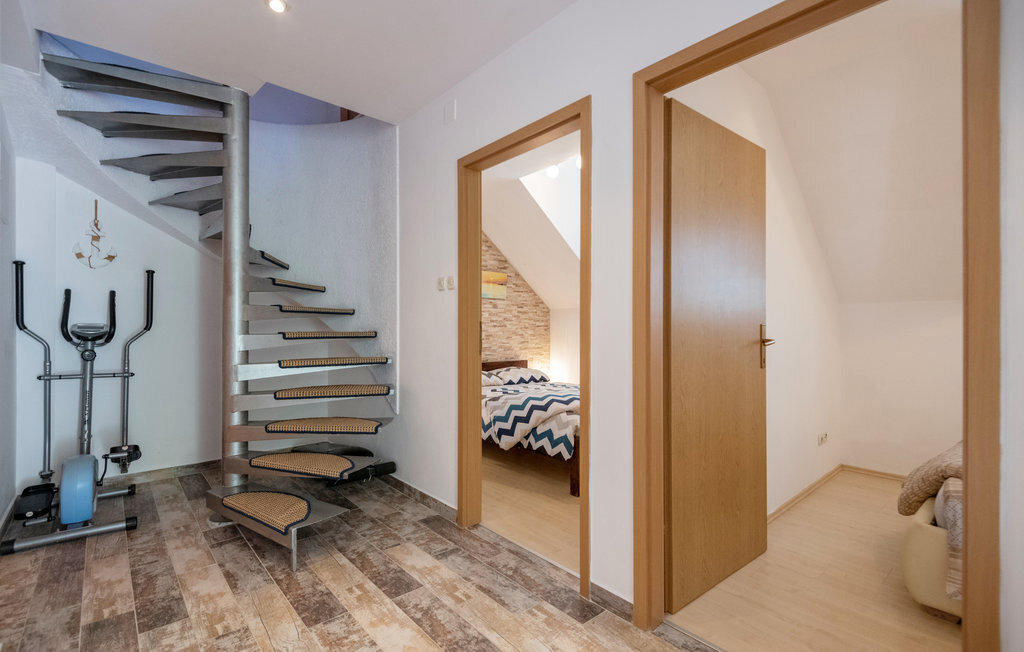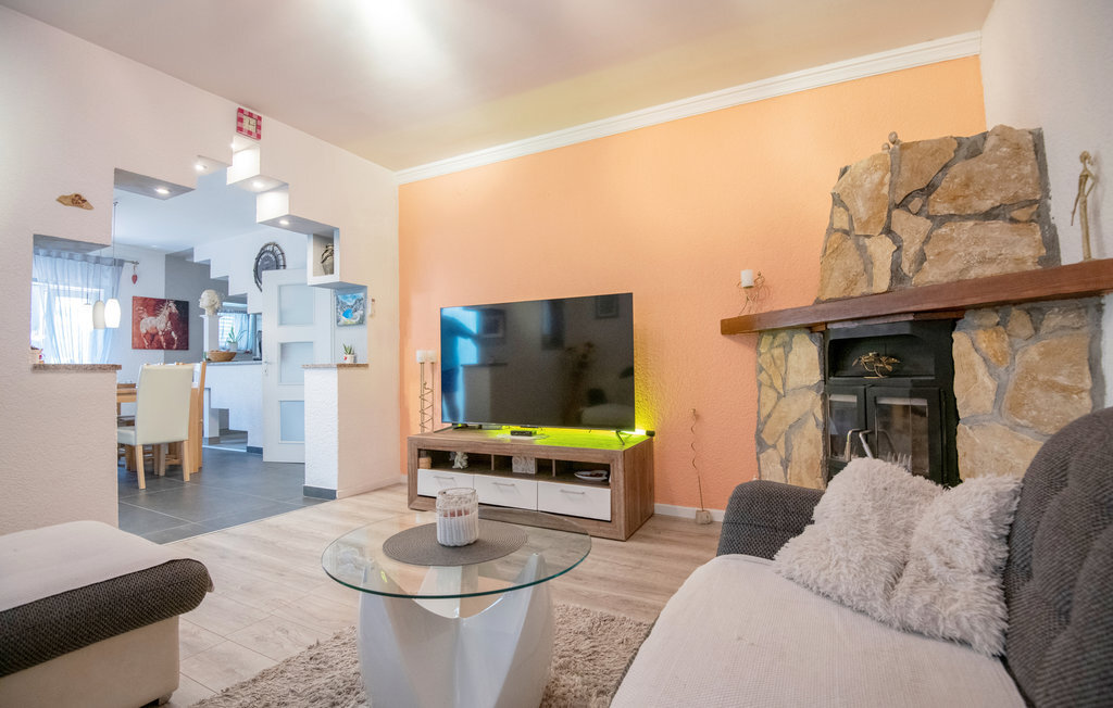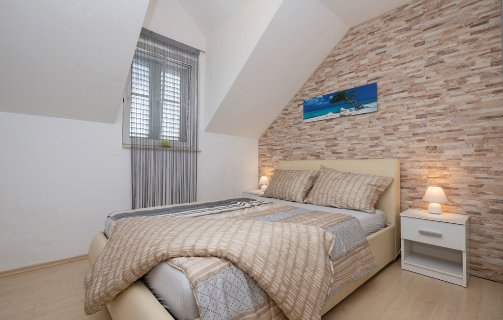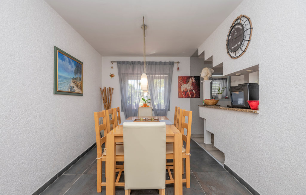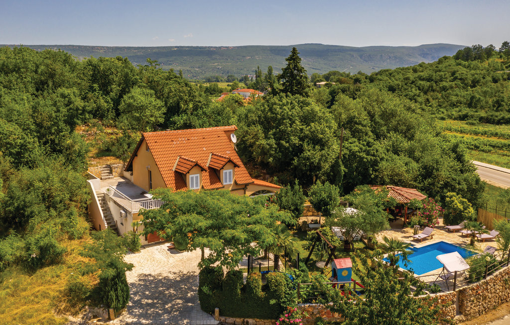 Cette maison de vacances joliment aménagée à Zmijavci, se trouve à proximité de la ville d'Imotski. Au rez-de-chaussée de la maison se trouvent une chambre à coucher, un salon (qui est aussi une salle d'activités), deux salles de bain et la cuisine avec un coin salon, tandis qu'à l'étage se trouvent trois chambres à coucher et une salle de bain. Dans les combles, il y a encore une chambre à coucher supplémentaire (pente du toit à 80 cm). La terrasse avec barbecue est idéale pour les moments de convivialité. La piscine permet de se rafraîchir à tout moment. Vous trouverez de belles plages sur la Makarska Riviera, à environ 25 km.