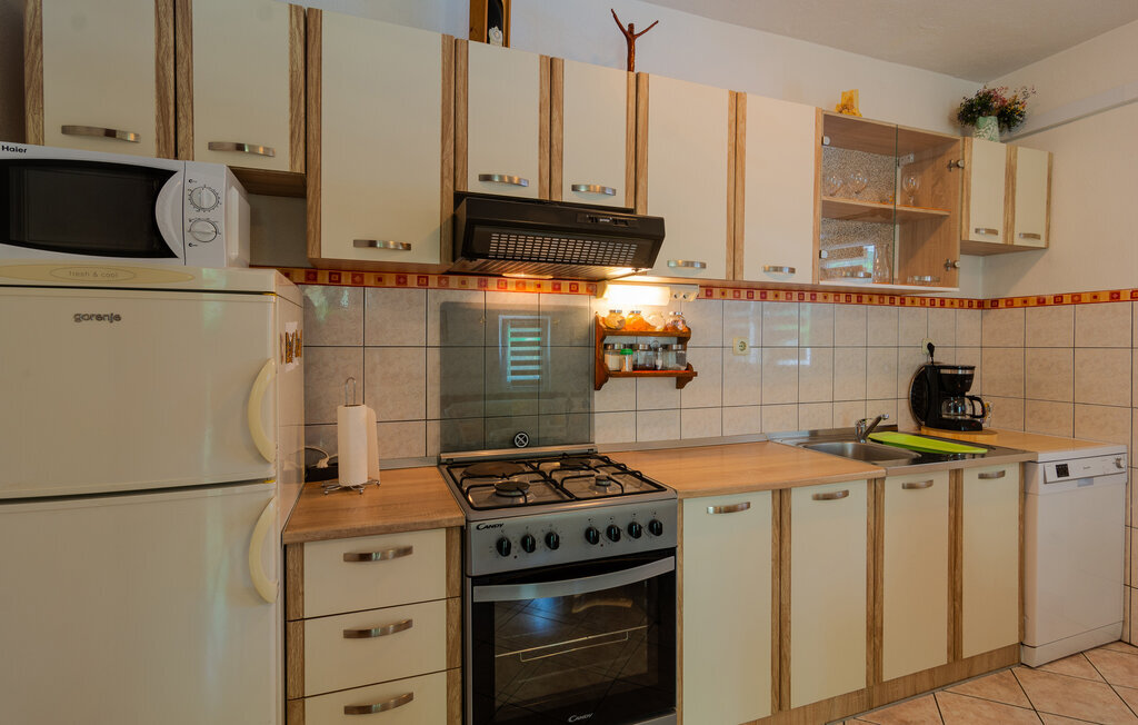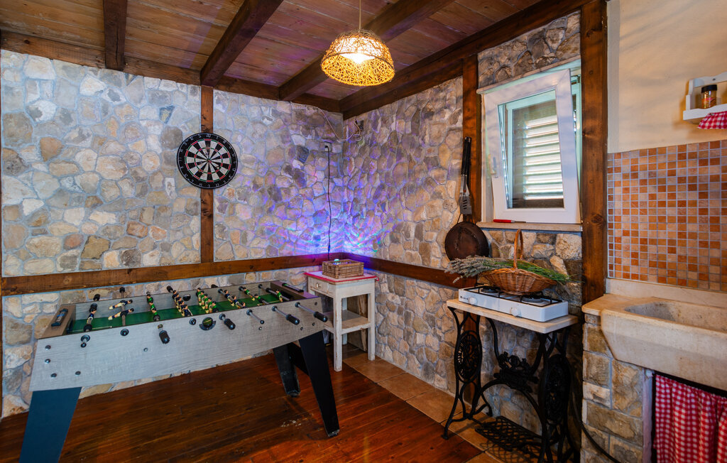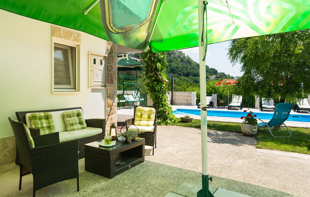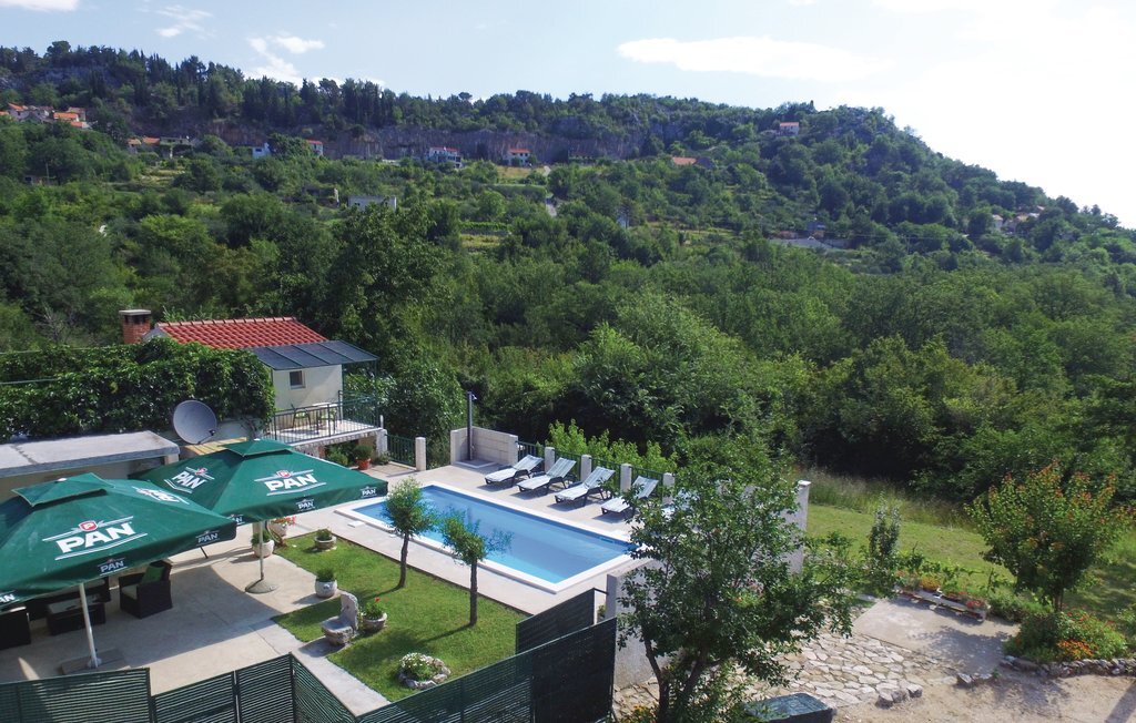 Vivez en contact étroit avec une nature presque intacte et à proximité des belles gorges de la rivière Cetina, où de nombreuses activités de plein air sont proposées, comme le trekking, le rafting, le kayak, l'escalade, la tyrolienne et le parapente. Dans un endroit isolé, près d'un parc naturel, se trouve cette magnifique propriété avec deux petites maisons et une piscine rafraîchissante. La maison du rez-de-chaussée se compose d'une cuisine-salon, d'une salle de bain et de deux chambres à coucher, tandis que la maison à deux étages comprend une cuisine d'été au rez-de-chaussée et une chambre à coucher avec salle de bain à l'étage séparé. Plusieurs terrasses entourent la propriété, idéales pour prendre des bains de soleil et se retrouver en toute convivialité. Des appareils d'entraînement et deux vélos sont également à la disposition des hôtes.