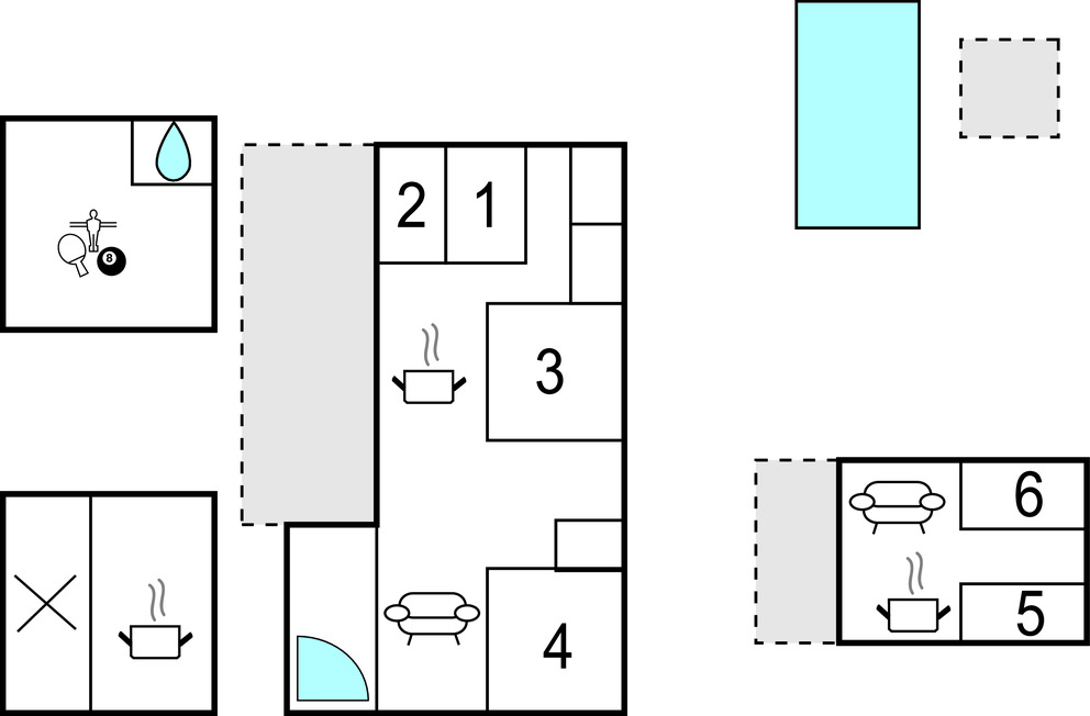 Location de vacances avec activités : Cette location de vacances comprend un ou plusieurs équipements de loisir (ping-pong, billard, baby-foot...)
