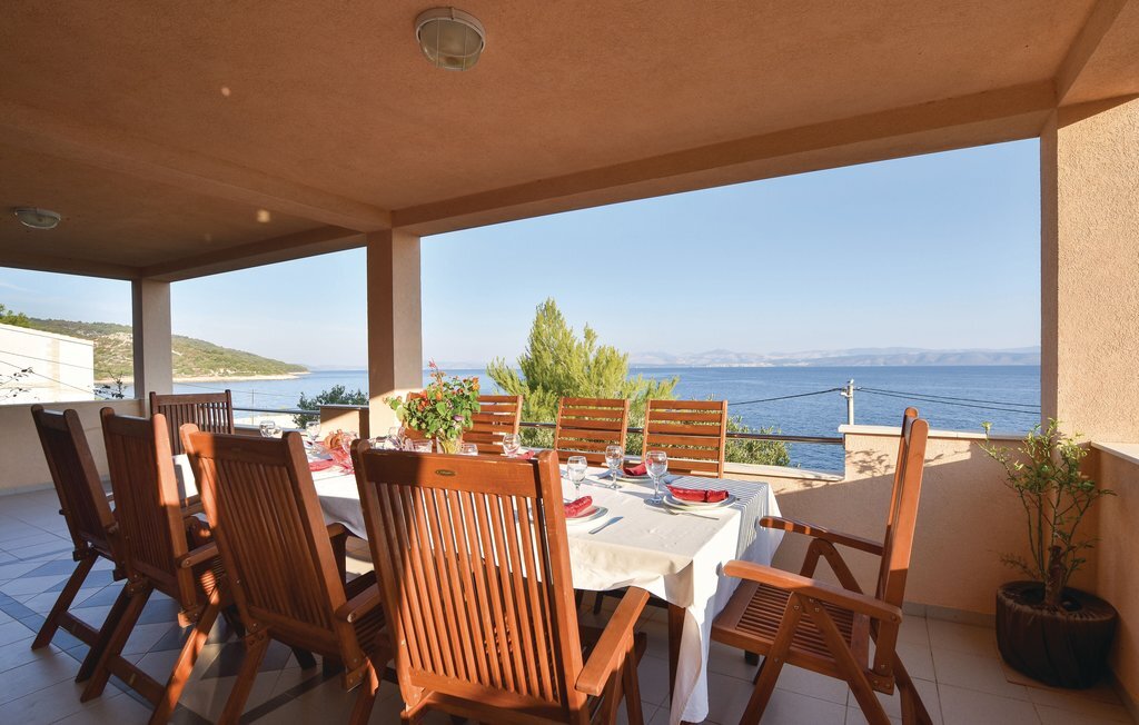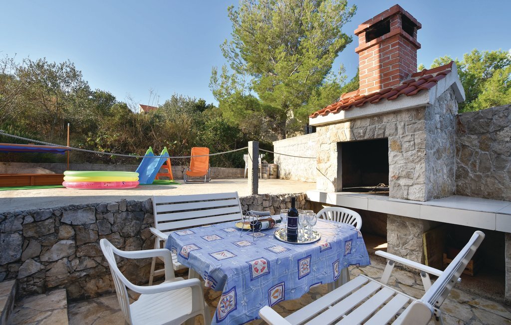 Profitez de la magnifique vue panoramique sur la mer dans cette maison de vacances située à Roga sur l'île d'olta. La maison se compose de deux unités d'habitation avec des escaliers extérieurs. Idéal pour deux familles qui souhaitent passer leurs vacances ensemble. La grande terrasse au rez-de-chaussée vous permet de passer ensemble des moments conviviaux pendant les soirées d'été. Il y a une plage en béton devant la maison et de nombreuses plages de galets dans les environs. Sur l'île ensoleillée d'Olta, il y a différentes possibilités de passer des vacances d'aventure ou des vacances paisibles en famille.