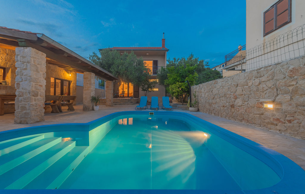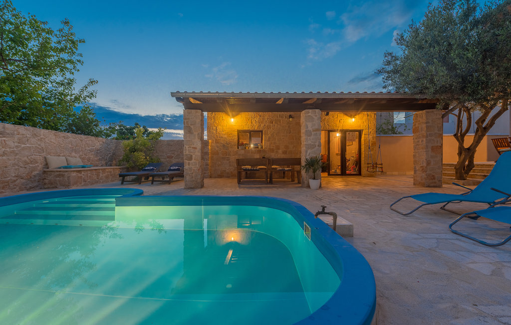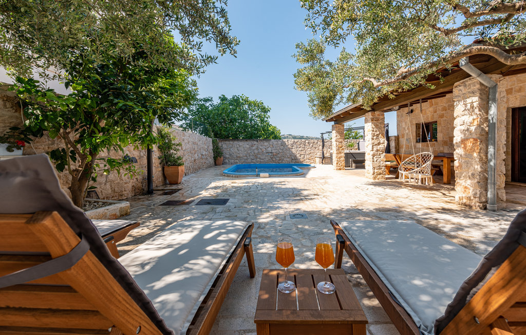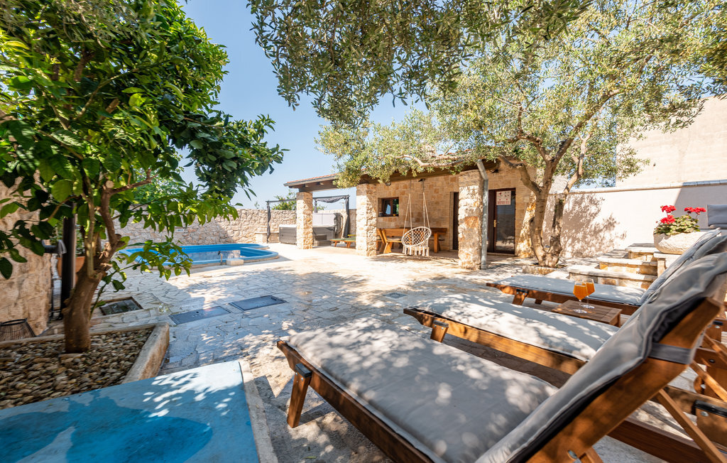 Bien-être à l'extérieur : Location de vacances disposant de chaises-longues et d'un ou plusieurs équipements tels que piscine extérieure, jacuzzi extérieur, lit à baldaquin de jardin etc...