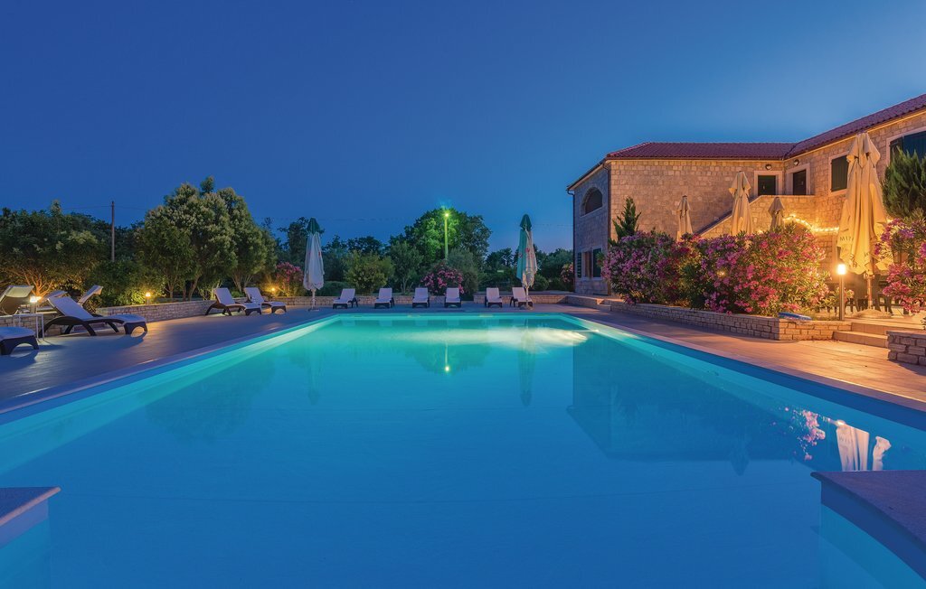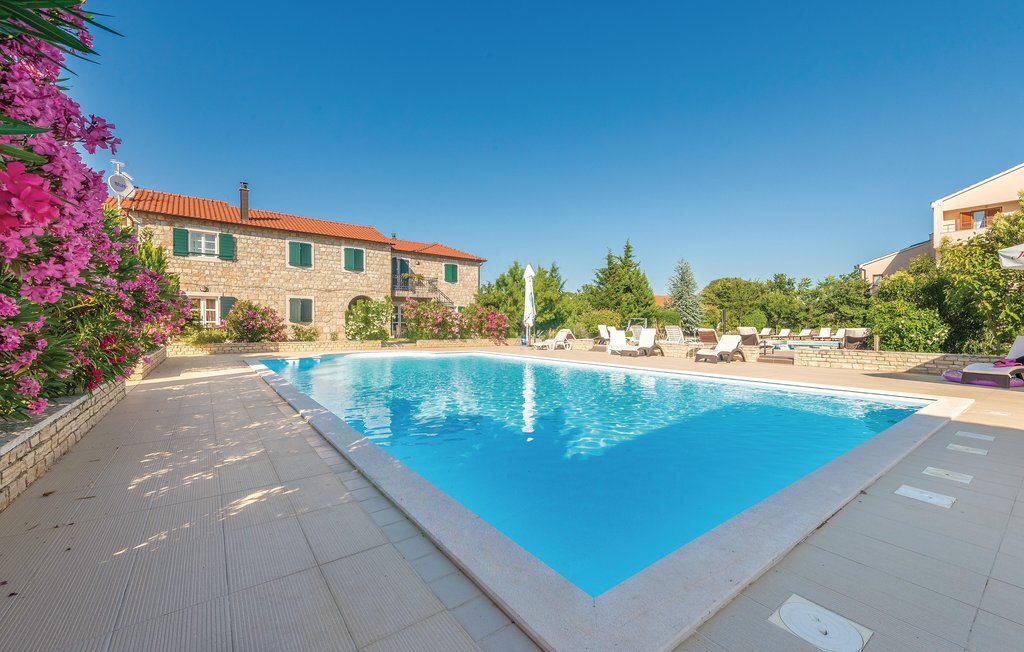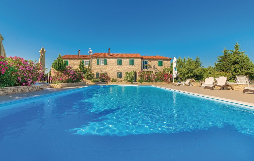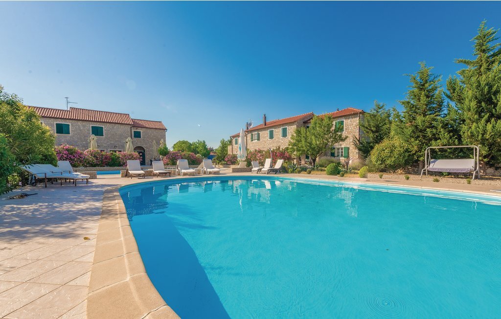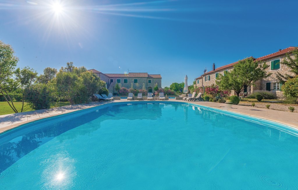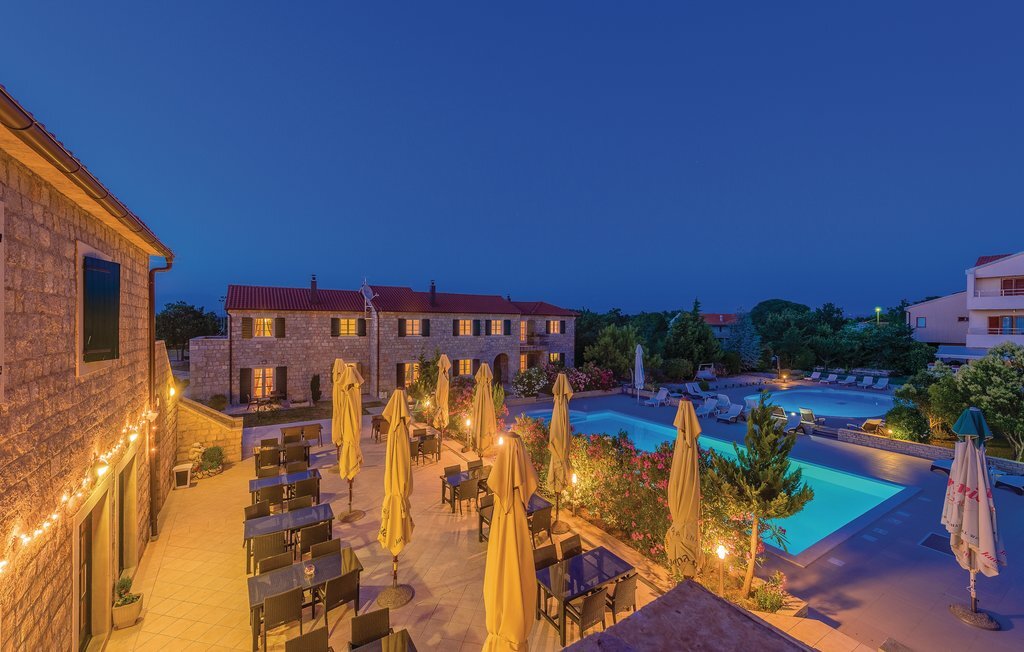 Sur cette propriété clôturée de 50.000 m², on vous accueillera avec un verre de bienvenue ! Les unités s'étendent sur deux étages et sont reliées entre elles par des escaliers extérieurs. Pour vous rafraîchir, deux grandes piscines sont à votre disposition, à partager avec les autres hôtes (environ 40 personnes). Un court de tennis, un terrain de basket et un terrain de mini-foot sont également à votre disposition. Contre un supplément, vous pouvez faire une excursion en bateau au parc national de Krka, jouer au paintball ou commander des vélos. Il est également possible de faire une visite guidée des vignobles suivie d'une dégustation de vin.