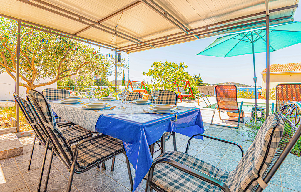 Cette maison de vacances se compose de deux unités d'habitation entièrement équipées, reliées entre elles par un escalier extérieur. La maison dispose d'un grand terrain et les terrasses offrent une vue magnifique sur la mer, dont vous pouvez profiter toute la journée. Détendez-vous sur l'une des nombreuses petites plages ensoleillées de Zatoglav. Visitez les villes de Sibenik et Trogir à 30 km et laissez-vous envoûter par l'histoire et la culture. Les amoureux de la nature devraient visiter les parcs nationaux de Krka et Kornati. Les restaurants et les tavernes proposent une grande variété de délices dalmates que vous devez absolument goûter.