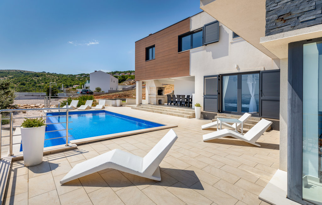 Bien-être à l'extérieur : Location de vacances disposant de chaises-longues et d'un ou plusieurs équipements tels que piscine extérieure, jacuzzi extérieur, lit à baldaquin de jardin etc...