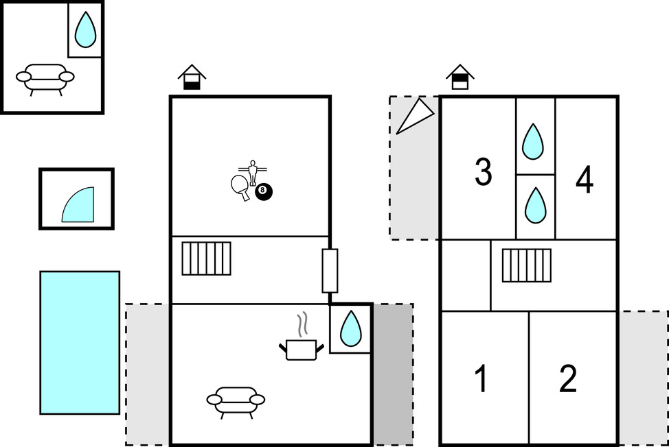 Location de vacances avec activités : Cette location de vacances comprend un ou plusieurs équipements de loisir (ping-pong, billard, baby-foot...)