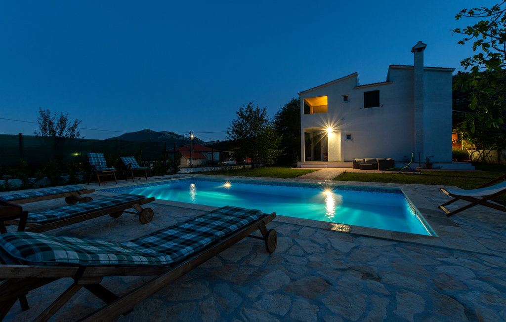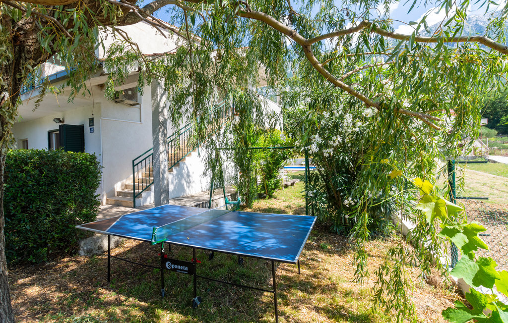 Dans la petite oasis verte, se trouve le village de Gata et cette jolie maison de vacances avec piscine. Elle se compose de trois chambres à coucher, d'un salon avec cheminée et d'une grande terrasse au premier étage, tandis qu'au rez-de-chaussée se trouvent encore une cuisine avec un grand salon et une chambre à coucher. Les étages ne sont accessibles que de l'extérieur. Détendez-vous près de la piscine, du barbecue extérieur, du jardin et du pavillon. La ville d'Omis, avec ses magnifiques plages de galets et son vaste programme de divertissement, n'est qu'à 5 km environ. Pour les activités sportives, il est également possible de faire du rafting sur la rivière Cetina, ainsi que du vélo et de la tyrolienne.