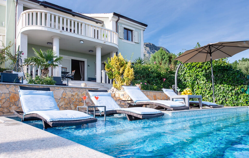 Bien-être à l'extérieur : Location de vacances disposant de chaises-longues et d'un ou plusieurs équipements tels que piscine extérieure, jacuzzi extérieur, lit à baldaquin de jardin etc...