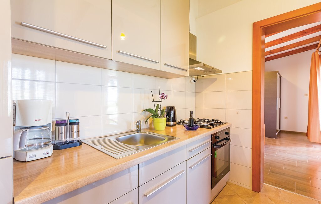 Passez d'agréables vacances d'été à proximité de la plage dans cette maison de vacances confortablement aménagée. Elle se compose de trois chambres à coucher, de deux salles de bains et d'une salle de séjour avec cuisine qui donne sur une terrasse spacieuse. Profitez de la belle vue sur la mer depuis la terrasse tout en préparant de délicieux barbecues. Le bassin de baignade avec des pads d'hydromassage offre un confort et une détente supplémentaires, mais aussi un rafraîchissement pendant les chaudes journées et soirées d'été. Dans le village voisin de Faana, différents festivals d'été sont organisés. Outre les divertissements, il y a de nombreux restaurants qui servent des délices locaux. Depuis le port, vous pouvez vous rendre en bateau au parc national des îles Brijuni. Là-bas, vous pourrez visiter le musée Tito, les enfants apprécieront le zoo et les amateurs de golf pourront s'attendre à de bons terrains de golf. Pour les clients orientés vers la famille et ceux qui ne sont pas intéressés par la vie nocturne, il y a une belle promenade le long du pittoresque front de mer de Faana. Vous pouvez visiter de nombreuses boutiques de souvenirs et ramener de superbes cadeaux qui vous rappelleront de merveilleuses vacances. Dans la ville voisine de Vodnjan, vous pourrez visiter la basilique Saint-Blaise, qui possède le plus haut clocher d'Istrie et une collection enviable de momies. Pula est célèbre pour ses nombreux monuments et sites datant de l'époque romaine. En été, la célèbre arène de Pula accueille des événements et des concerts intéressants. L'un d'entre eux est le Pula Film Festival, dont vous ramènerez un merveilleux souvenir d'un film sous les étoiles. Outre les célèbres arènes et le temple d'Auguste bien conservé dans le forum, la mosaïque Dirk et l'arc de triomphe de Sergius sont également des curiosités qui doivent faire partie d'un tour de ville. Des bateaux et des vélos peuvent être loués directement auprès du propriétaire.