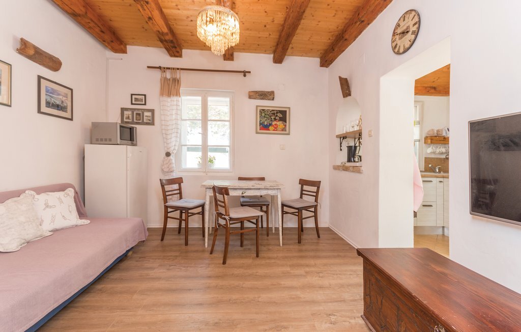 Ici, vous habitez à deux pas de la mer. Profitez de la belle vue sur la mer depuis le grand jardin. Il y a un barbecue extérieur, au fond du jardin, et des chaises longues et des arbres qui font de l'ombre. Dans la maison, vous trouverez une cuisine, une salle à manger et un salon avec un accès direct à la chambre à coucher. Seul un rideau sépare cette pièce du salon. drelac est reliée à l'île d'Ugljen par un pont et l'eau claire, les belles plages, les sites de plongée et de planche à voile intéressants, les pistes cyclables et les parcours de course à pied rendent cette destination très attrayante pour des vacances d'été.