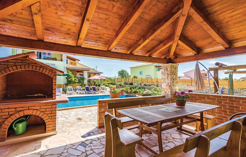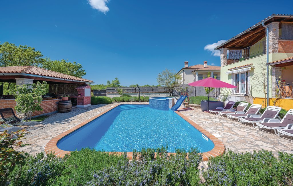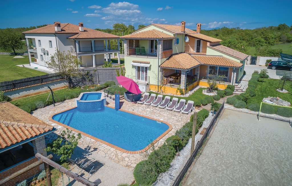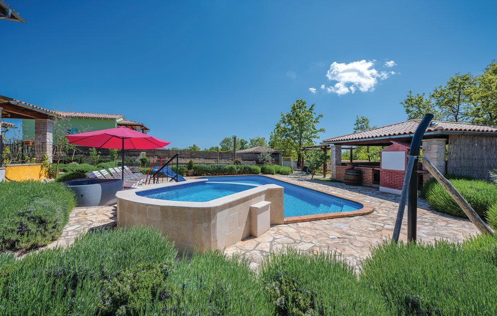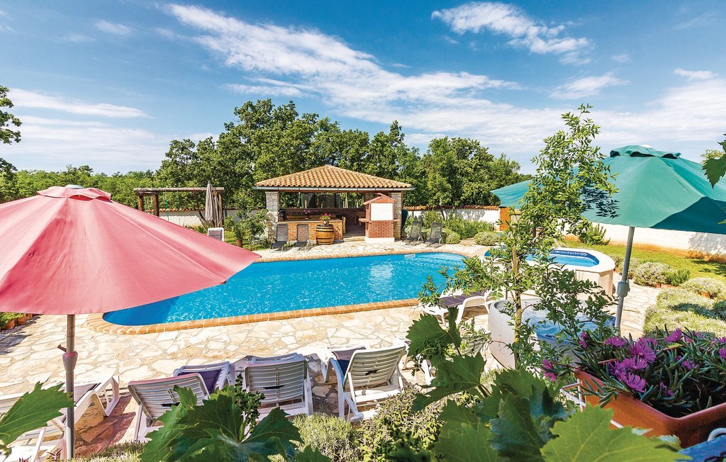 Bien-être à l'extérieur : Location de vacances disposant de chaises-longues et d'un ou plusieurs équipements tels que piscine extérieure, jacuzzi extérieur, lit à baldaquin de jardin etc...
