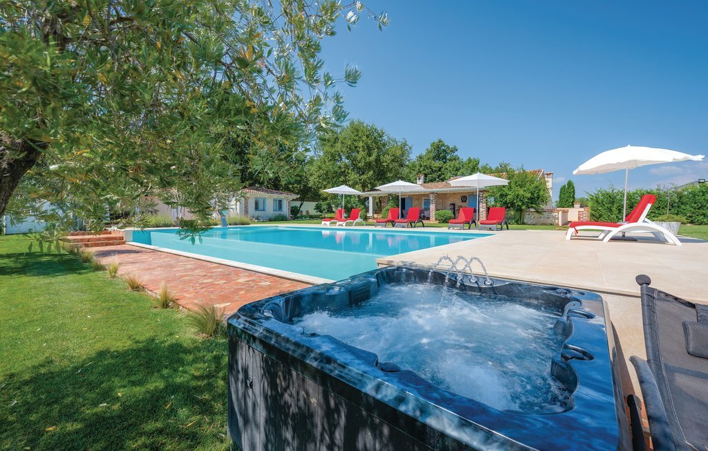 Bien-être à l'extérieur : Location de vacances disposant de chaises-longues et d'un ou plusieurs équipements tels que piscine extérieure, jacuzzi extérieur, lit à baldaquin de jardin etc...