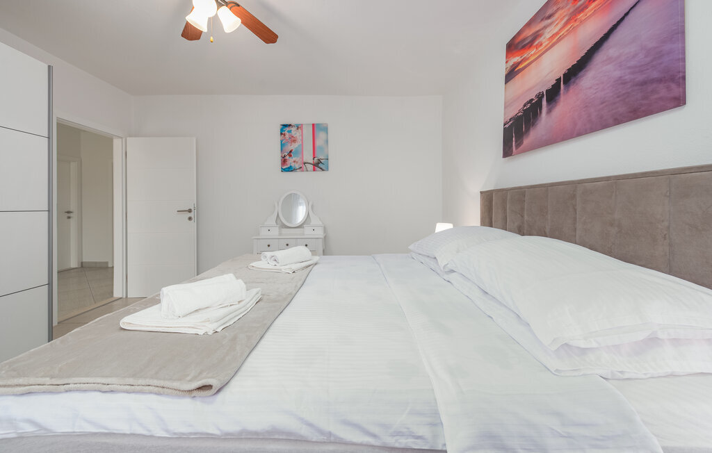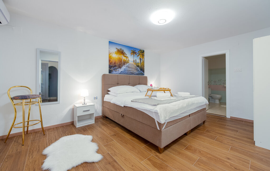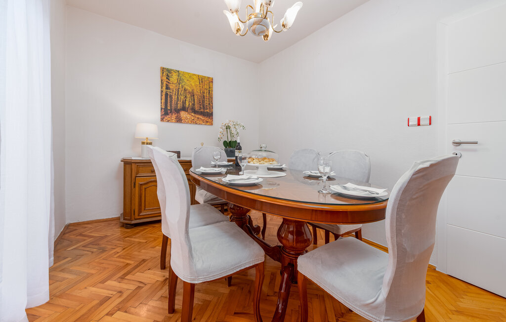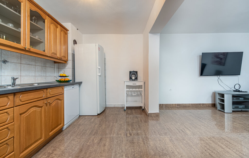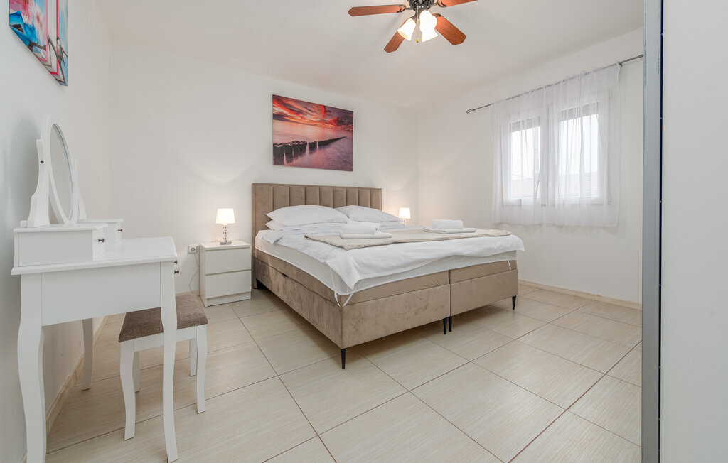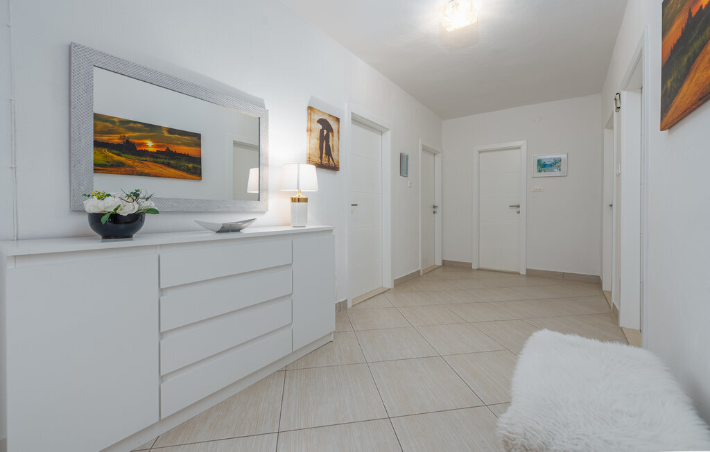Cette confortable maison de vacances se trouve à Lovinac et s'étend sur deux étages reliés par des escaliers extérieurs. Le grand terrain offre suffisamment de confort et la piscine offre un rafraîchissement bienvenu pendant les journées d'été. Au rez-de-chaussée se trouve une taverne typique (konoba) pour préparer de délicieuses grillades. Vous pouvez prendre le soleil et vous détendre sur la terrasse ouverte. Visitez la ville historique de Zadar, située à seulement 15 km, qui possède de nombreux monuments culturels ainsi que les attractions que sont les orgues de mer et le salut au soleil.