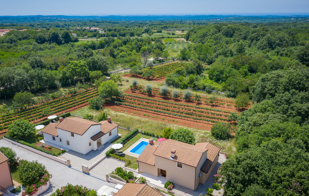 Cette maison de vacances avec piscine est située dans le petit village de Kmacici, près de Tinjan, une localité à l'intérieur des terres. La maison est aménagée avec goût et de manière contemporaine. Au rez-de-chaussée se trouvent un grand salon, une cuisine et une salle à manger. Le couloir mène à la salle de bain et à une chambre à coucher. Un escalier intérieur mène au premier étage, où se trouvent encore deux chambres à coucher et une salle de bain. Passez votre temps sur la pelouse fermée avec piscine ou sur la terrasse couverte avec barbecue. Les plages de la station balnéaire de Porec sont à environ 15 minutes en voiture.